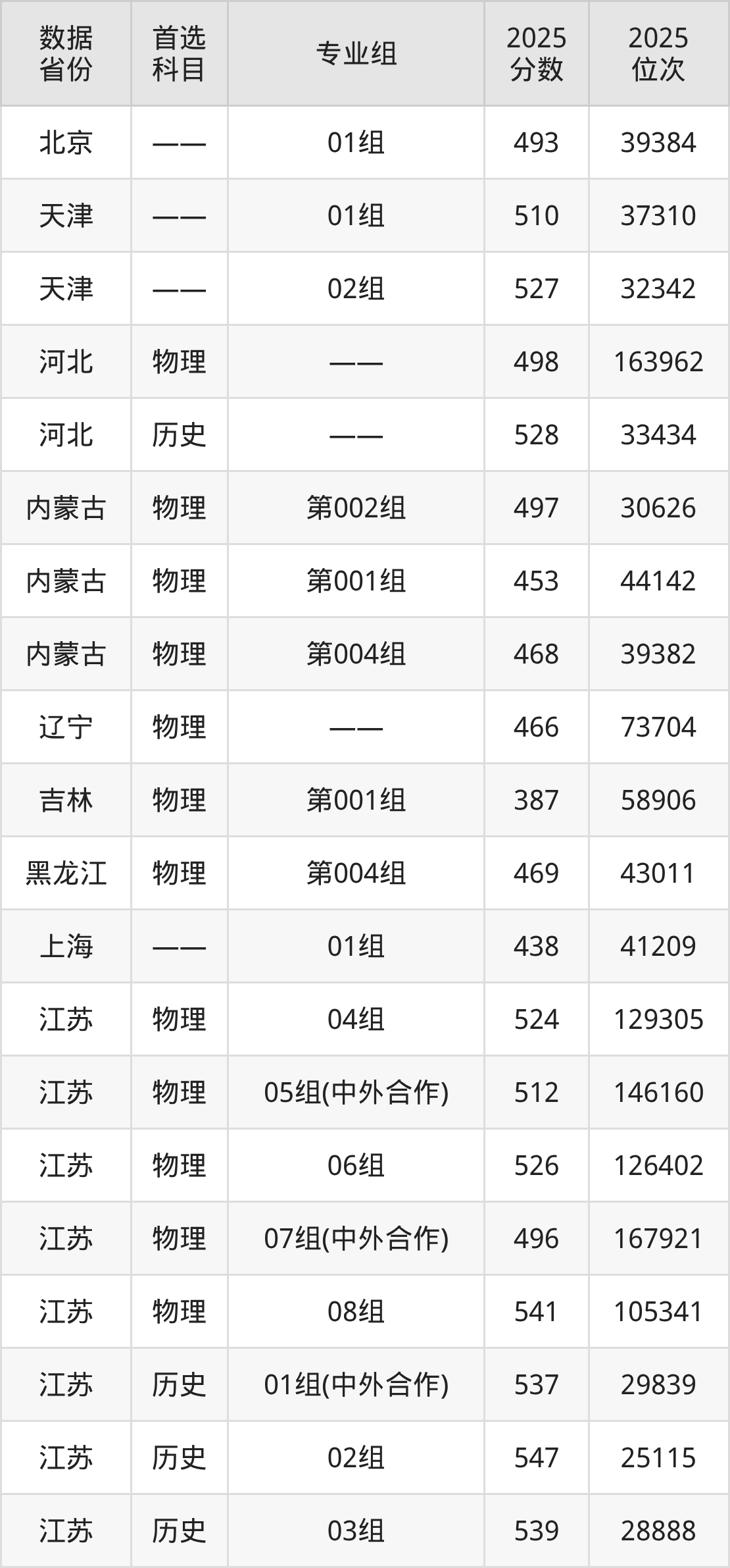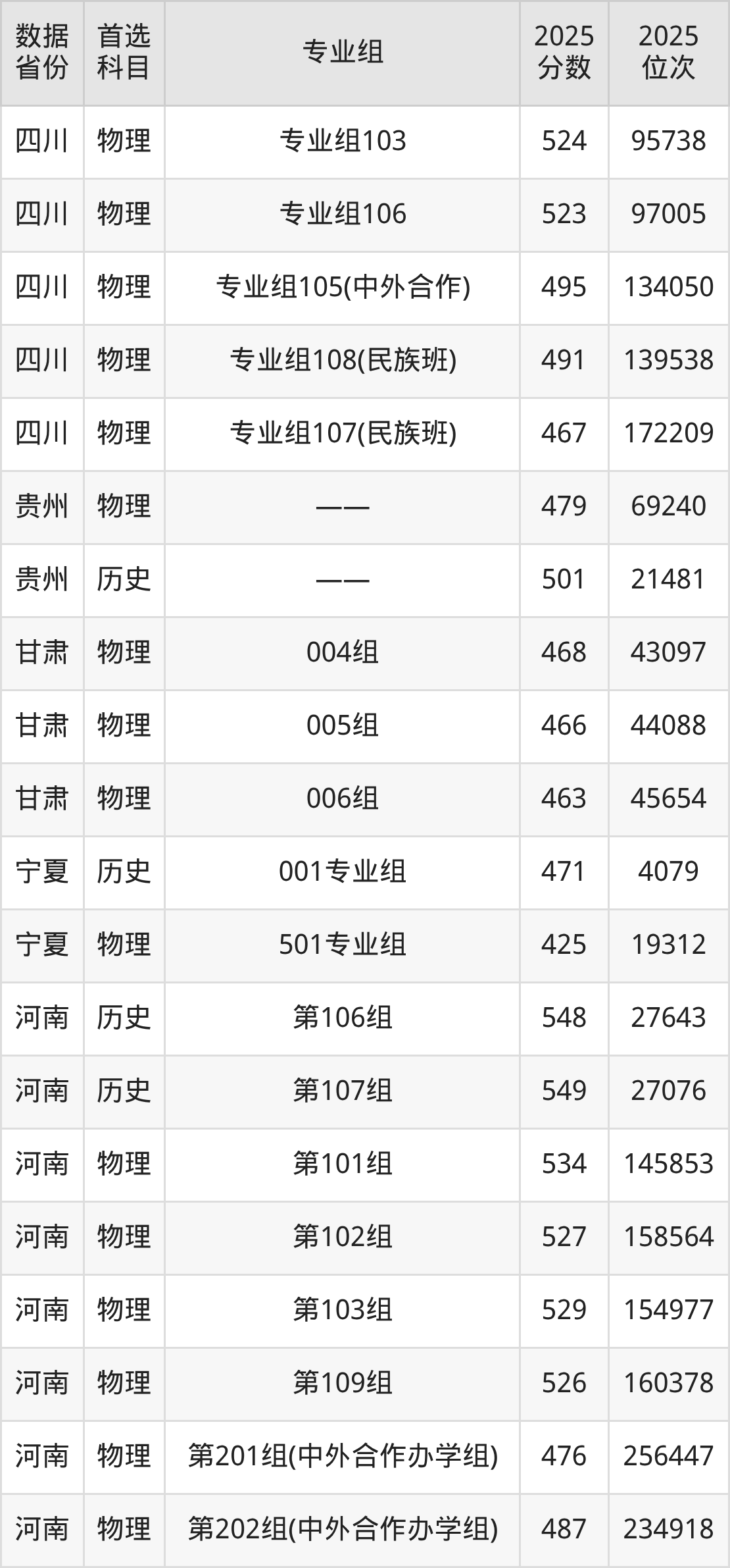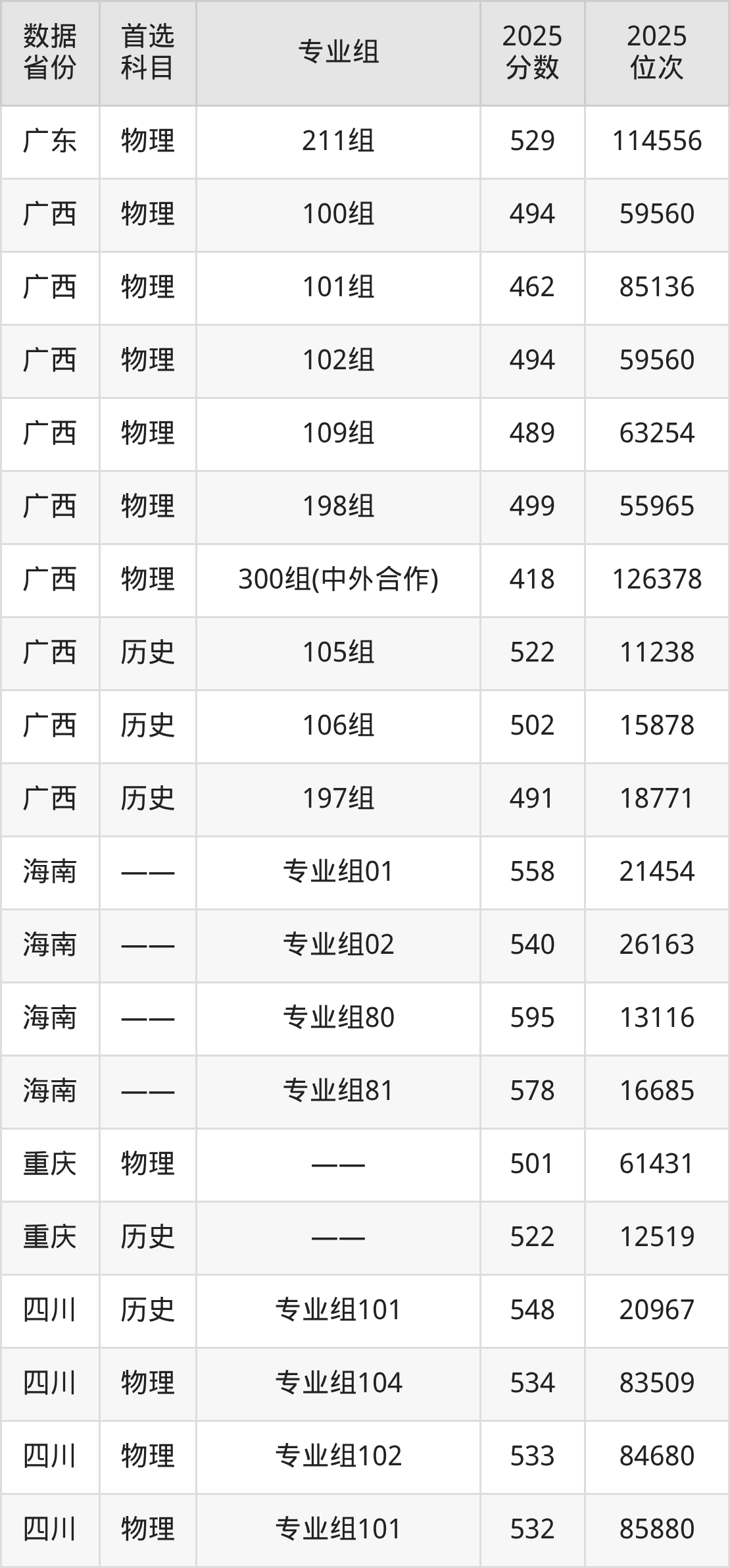 2025年云南农业大学全国录取分数线最低是387分,最高是595分,平均分在501分左右。在多数地区录取最低分均超过430分。低于430分能上的地区只有江西、宁夏和广西和吉林,高于平均值较多的是四川、河南、海南和江苏等地,均有专业组最低分在537分及以上。