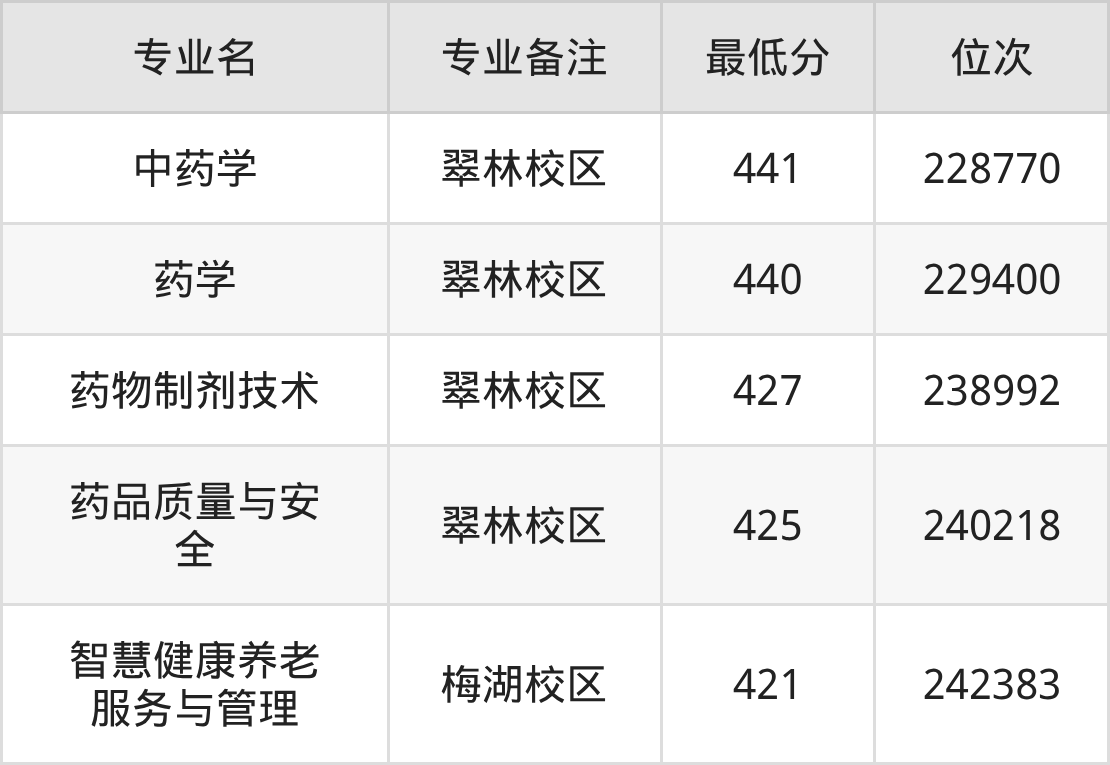 4、药品质量与安全(翠林校区):425分、位次240218名;