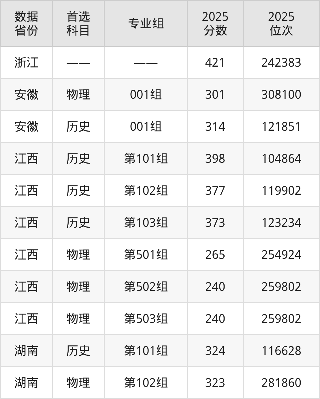 下面是江西管理职业学院各省最低分汇总,各专业组录取分数线可参考下方图片: