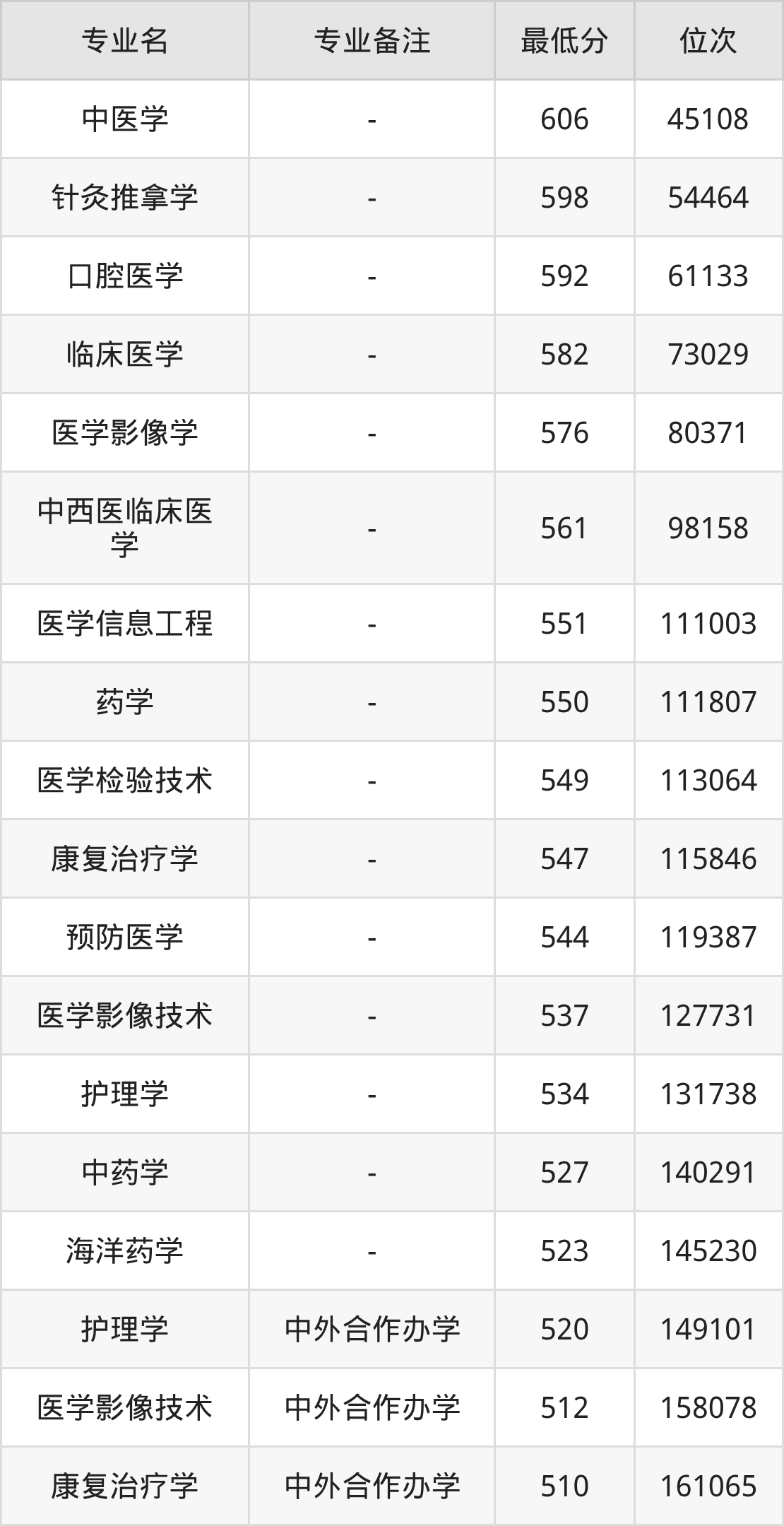 下面是海南医科大学各省最低分汇总,各专业组录取分数线可参考下方图片: