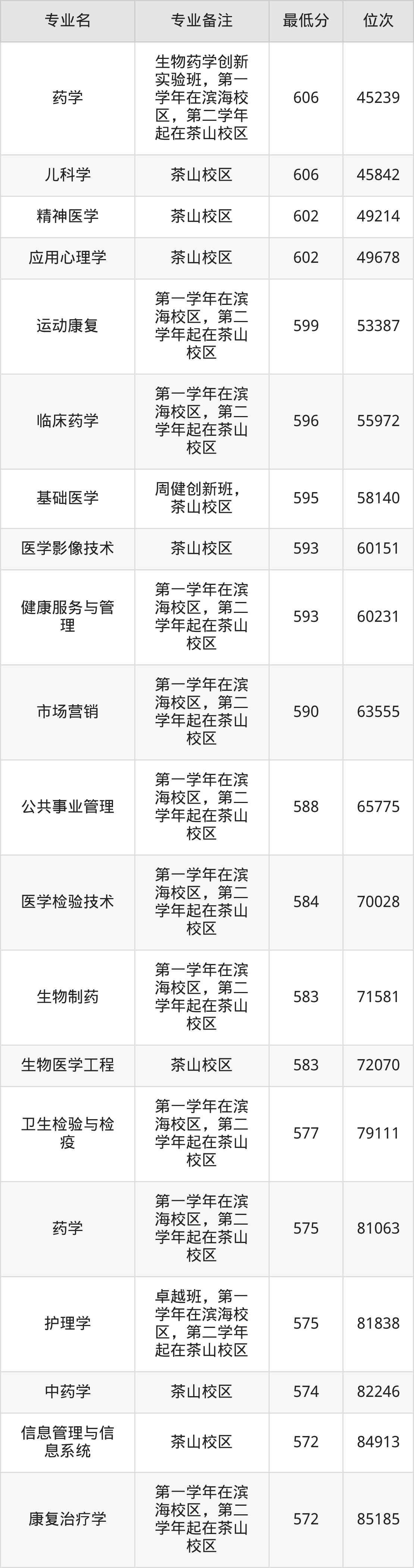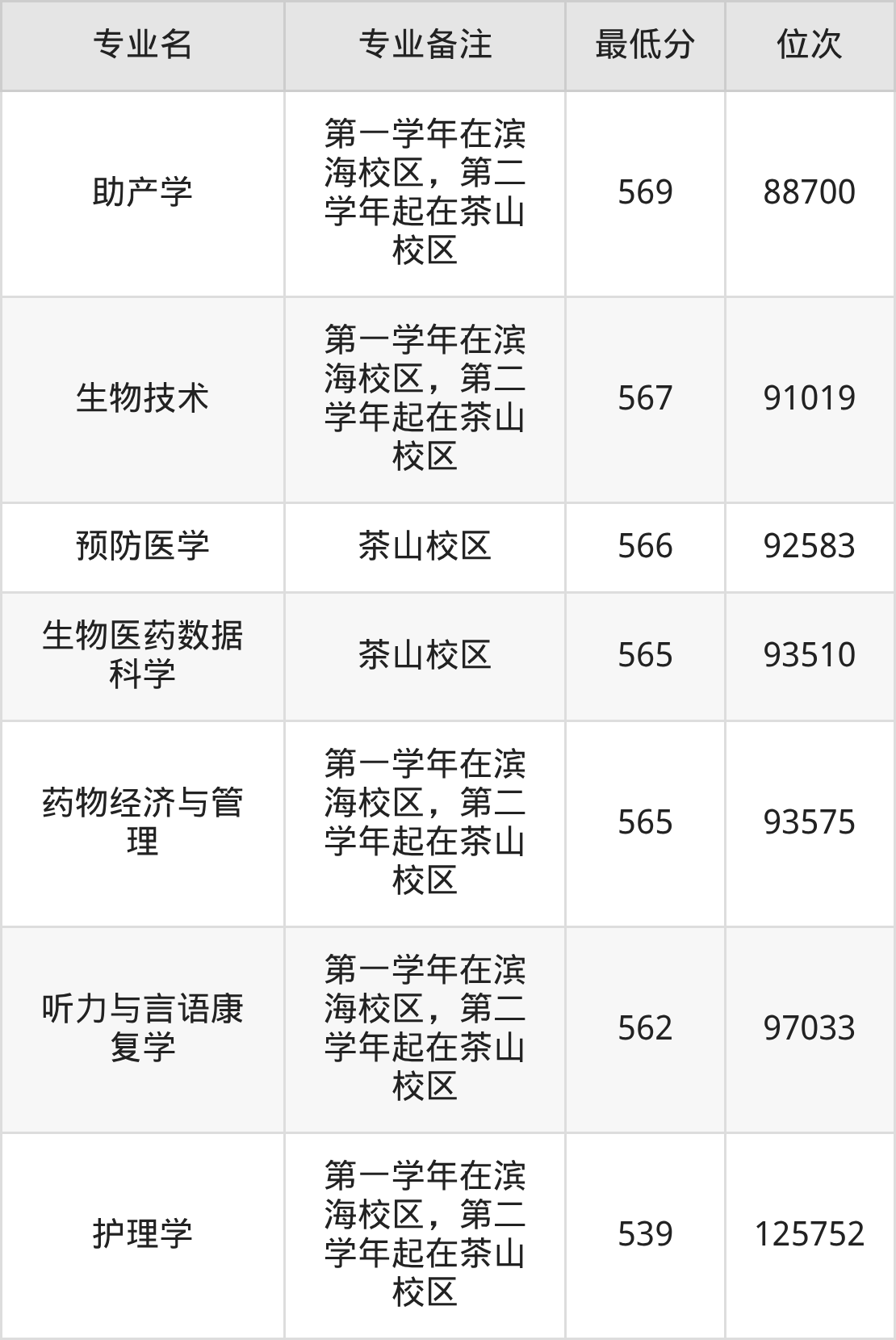 下面是温州医科大学各省最低分汇总,各专业组录取分数线可参考下方图片: