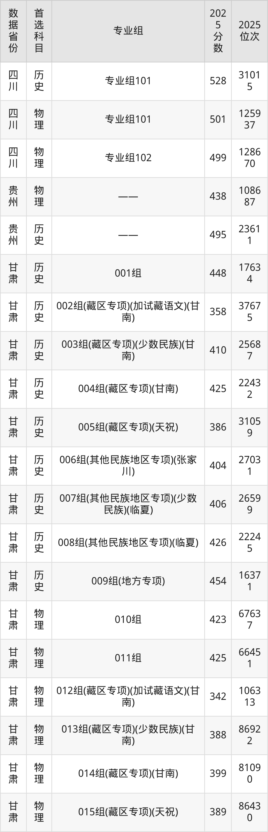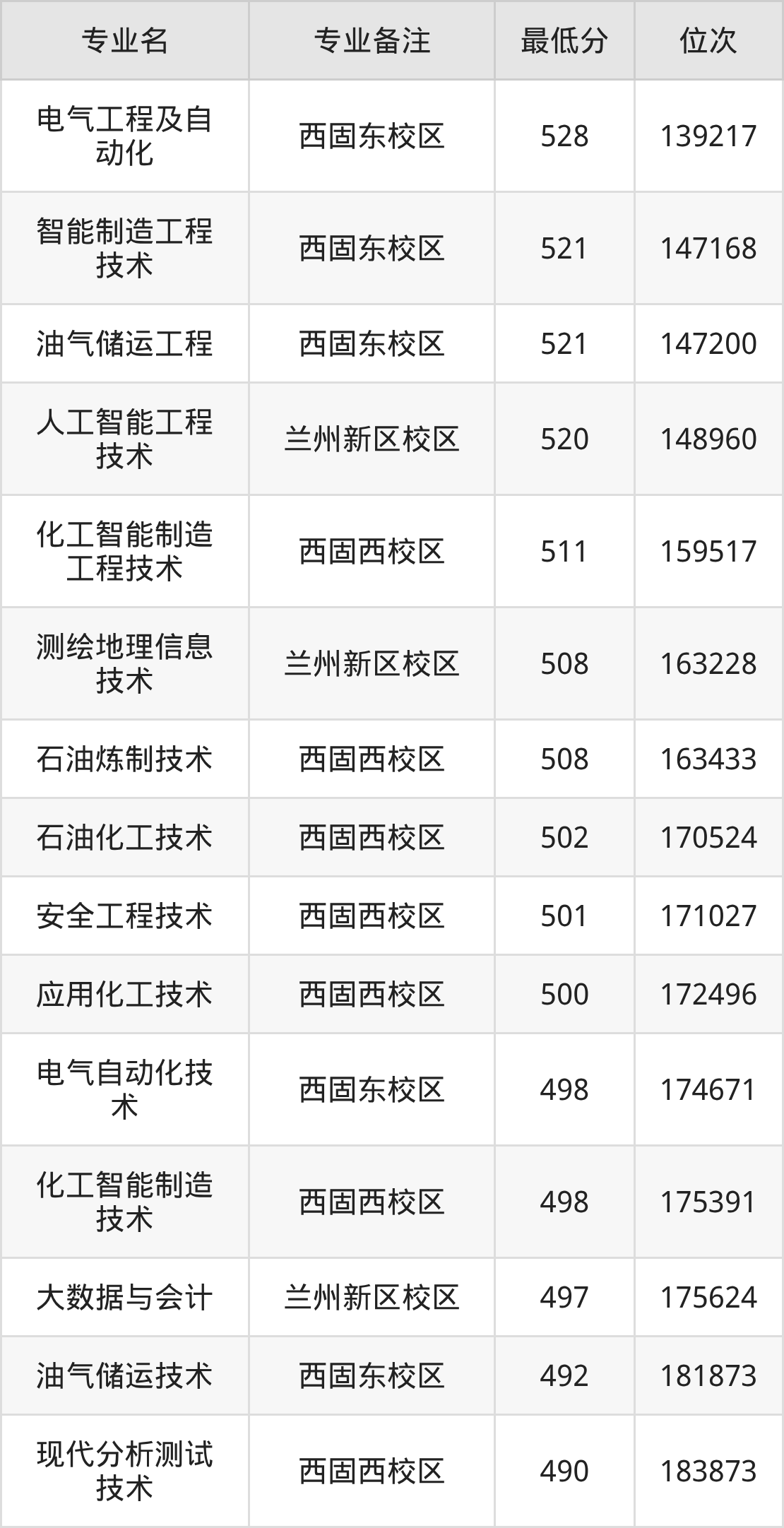 下面是兰州石化职业技术大学各省最低分汇总,各专业组录取分数线可参考下方图片: