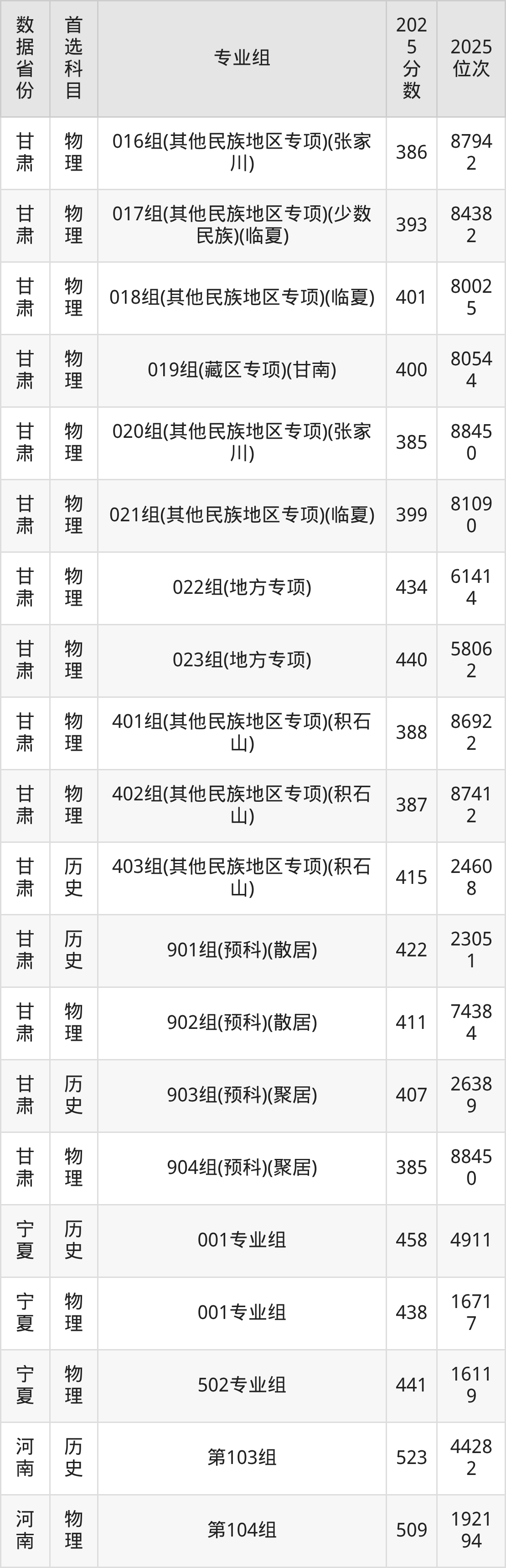 | 物理 | 建筑工程 | 少数民族紧缺 人才培养专项 | 3 |