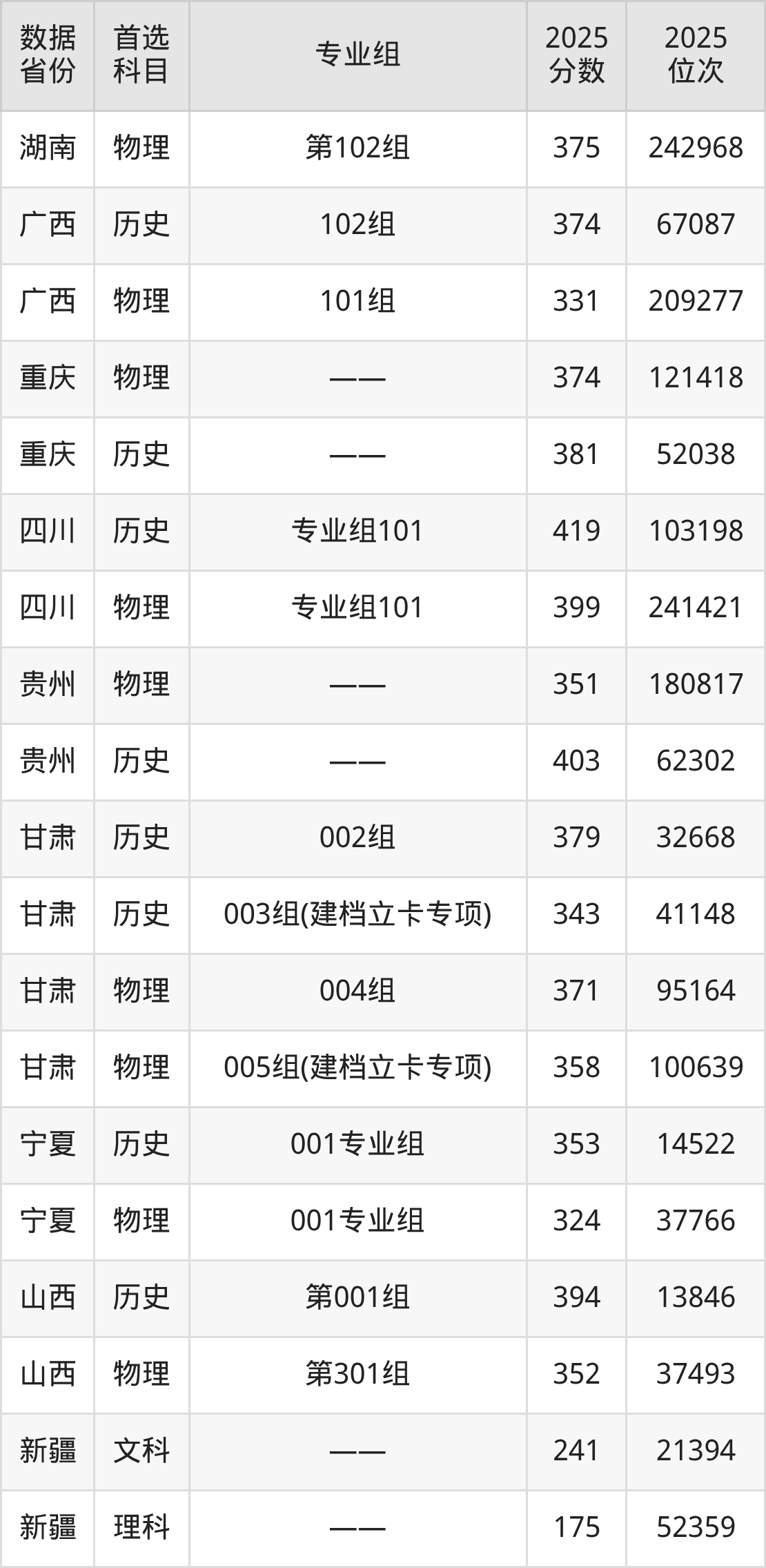 下面是甘肃交通职业技术学院各省最低分汇总,各专业组录取分数线可参考下方图片: