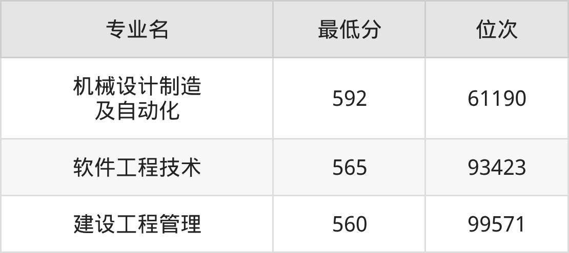 1、机械设计制造及自动化:592分、位次61190名;