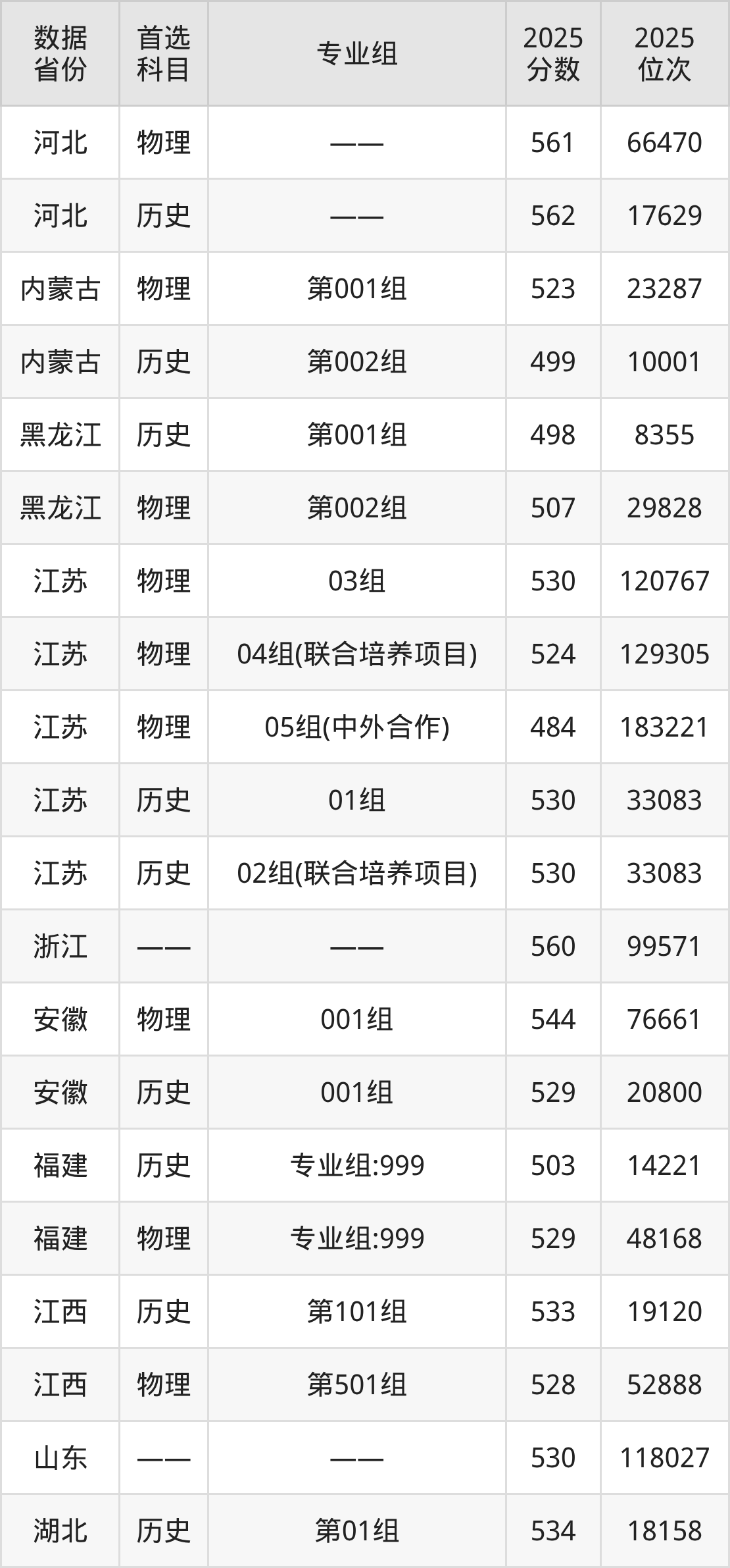 | 物理 | 机械电子工程 技术 | 中外合作办学 | 85 |