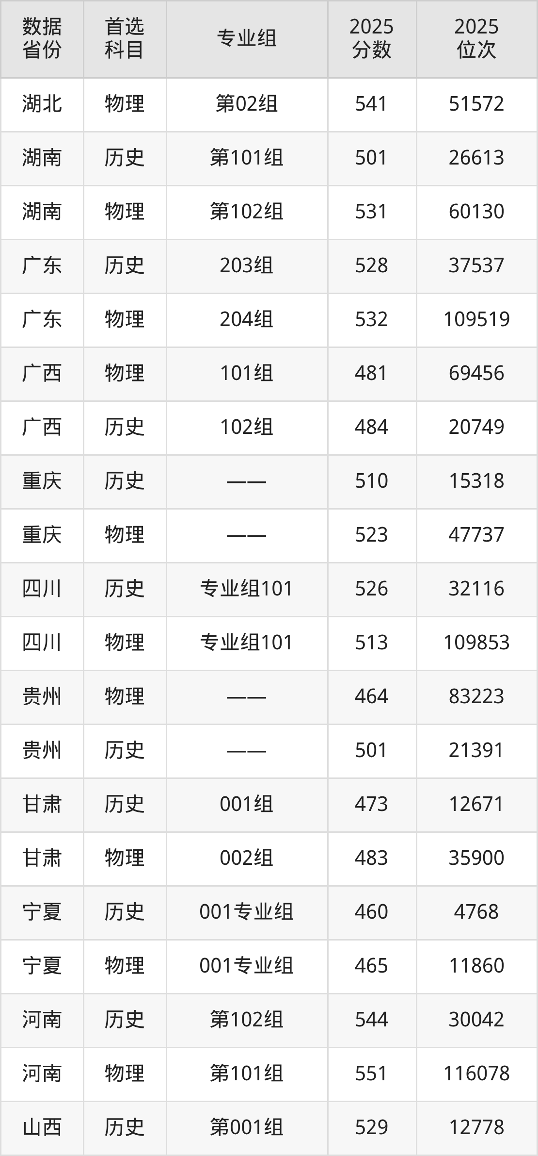 湖南:历史组501分、物理组531分;