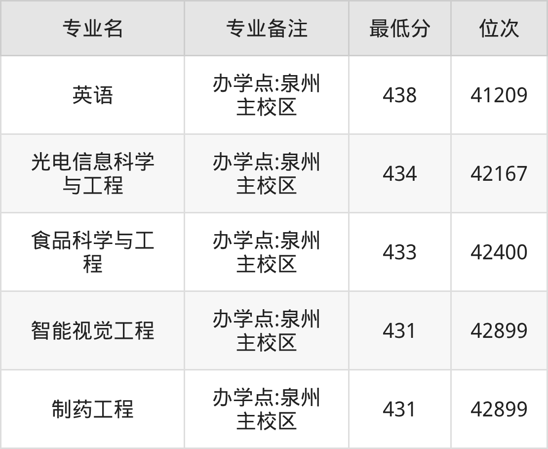 3、食品科学与工程(办学点:泉州主校区):433分、位次42400名;