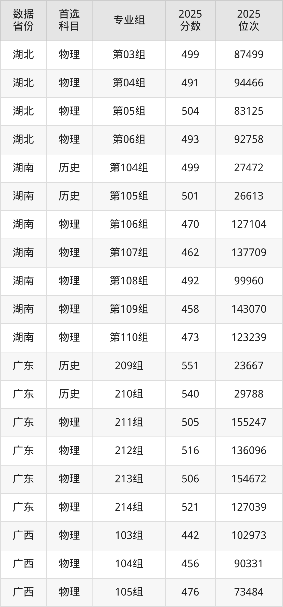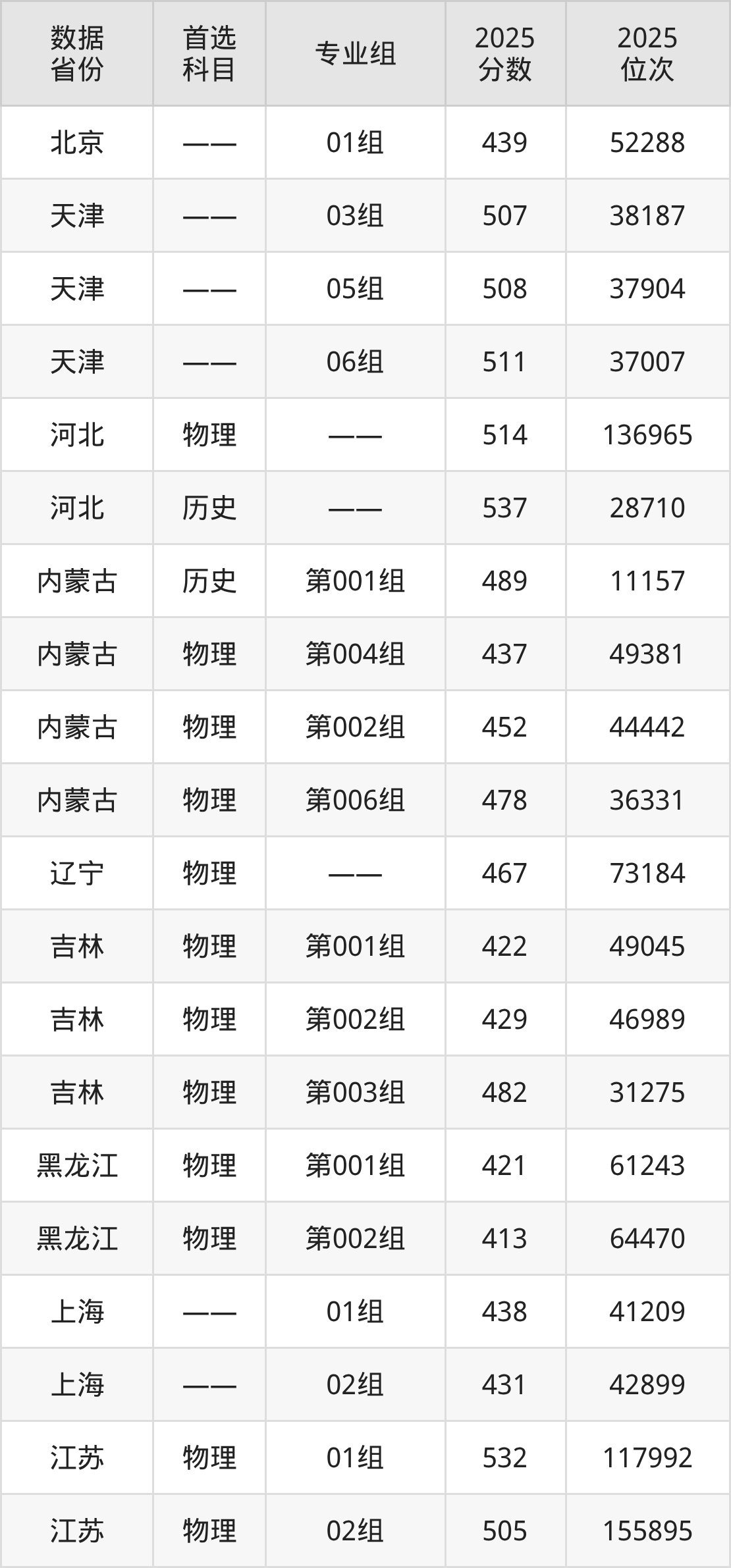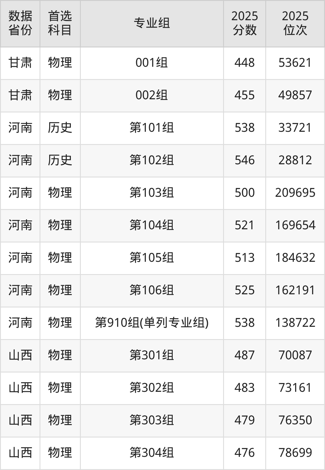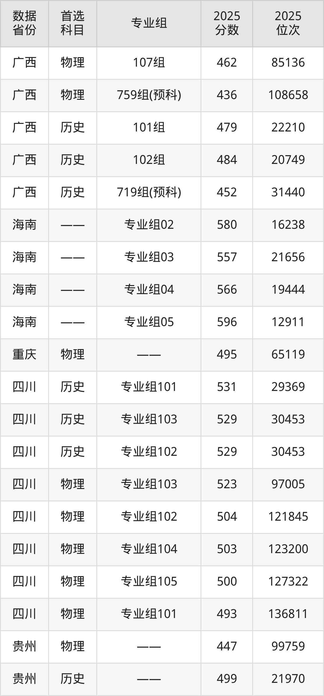 2025年泉州师范学院全国录取分数线最低是413分,最高是596分,平均分在497分左右。在多数地区录取最低分均超过430分。低于430分能上的地区只有吉林和黑龙江,高于平均值较多的是海南、广东、江西和河南等地,均有专业组最低分在538分及以上。