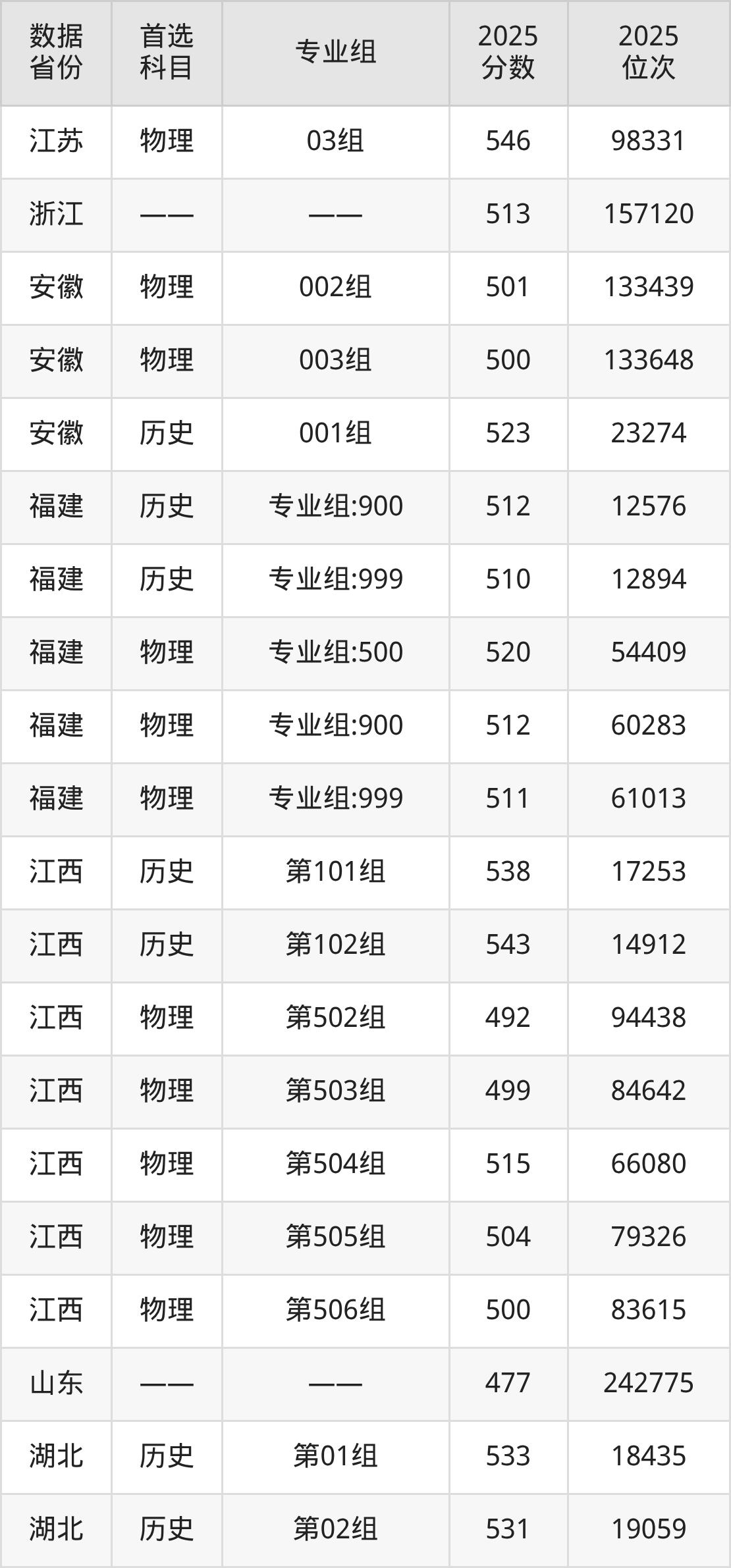 下面是泉州师范学院各省最低分汇总,各专业组录取分数线可参考下方图片: