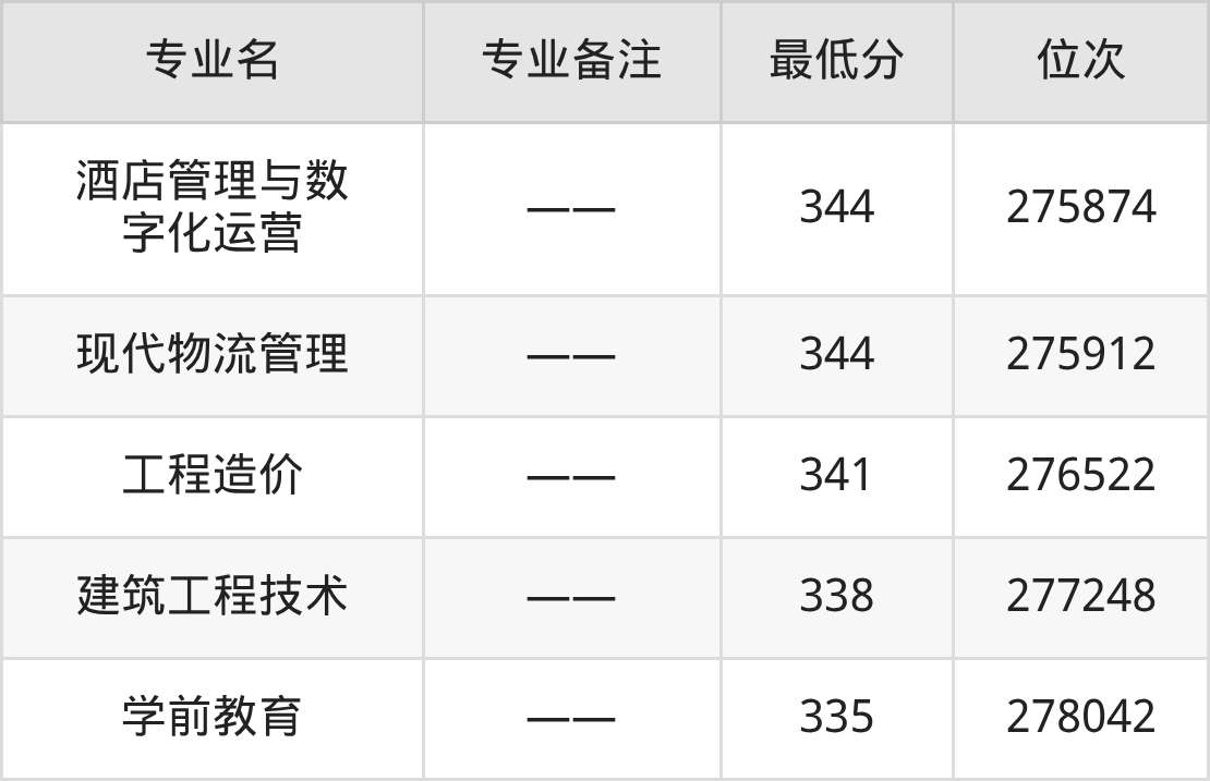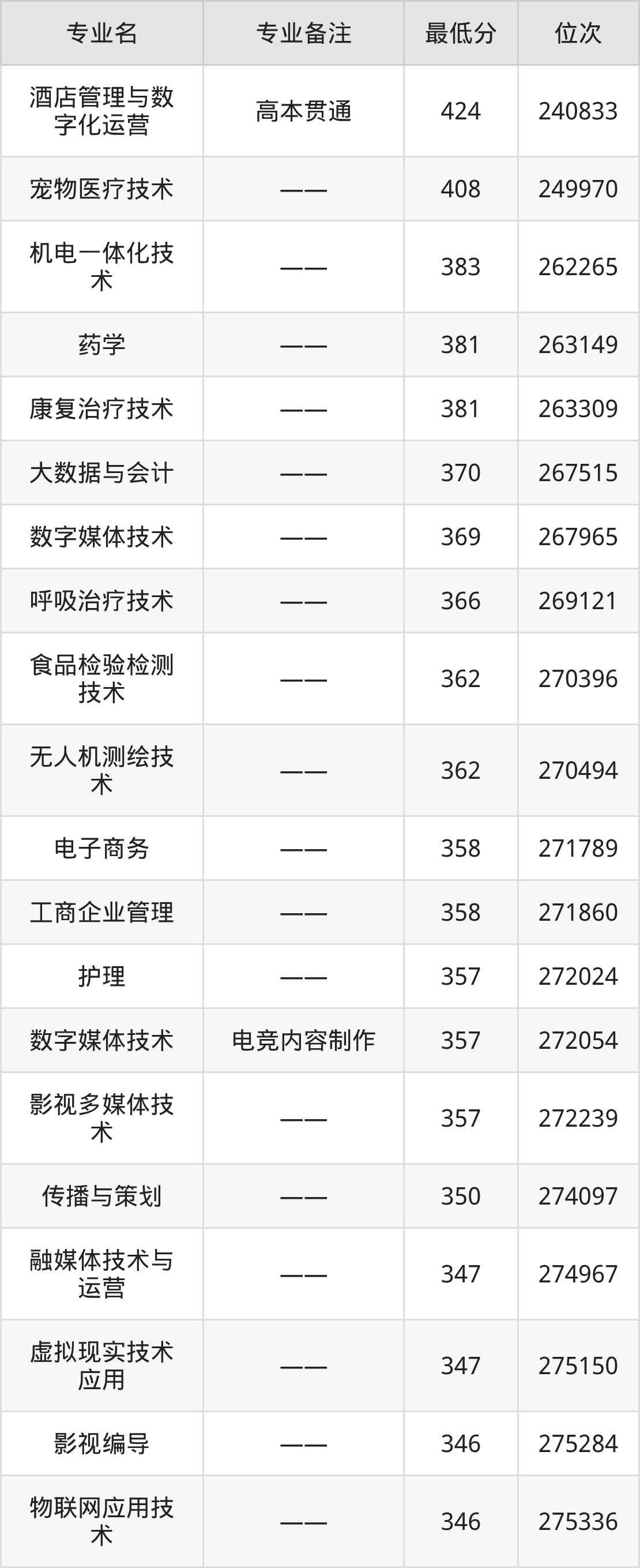 1、酒店管理与数字化运营(高本贯通):424分、位次240833名;