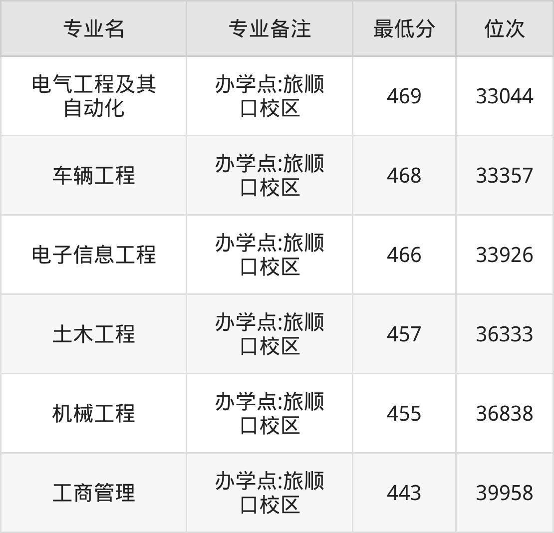 1、电气工程及其自动化(办学点:旅顺口校区):469分、位次33044名;