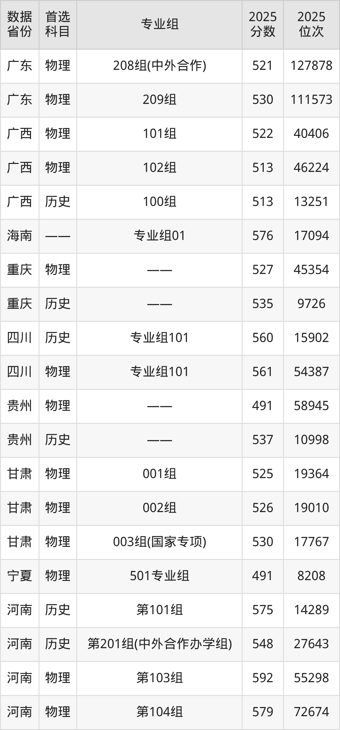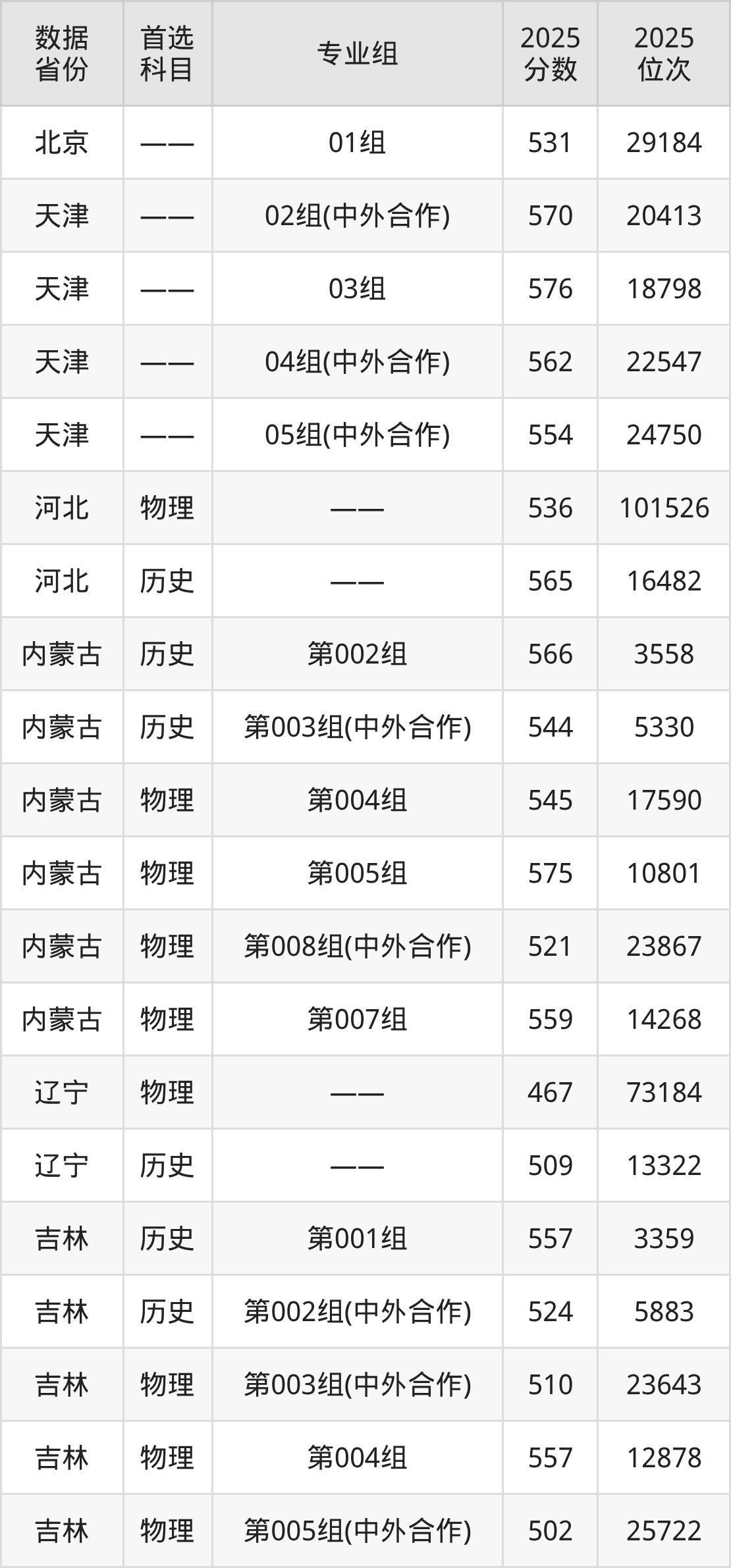 下面是大连交通大学各省最低分汇总,各专业组录取分数线可参考下方图片: