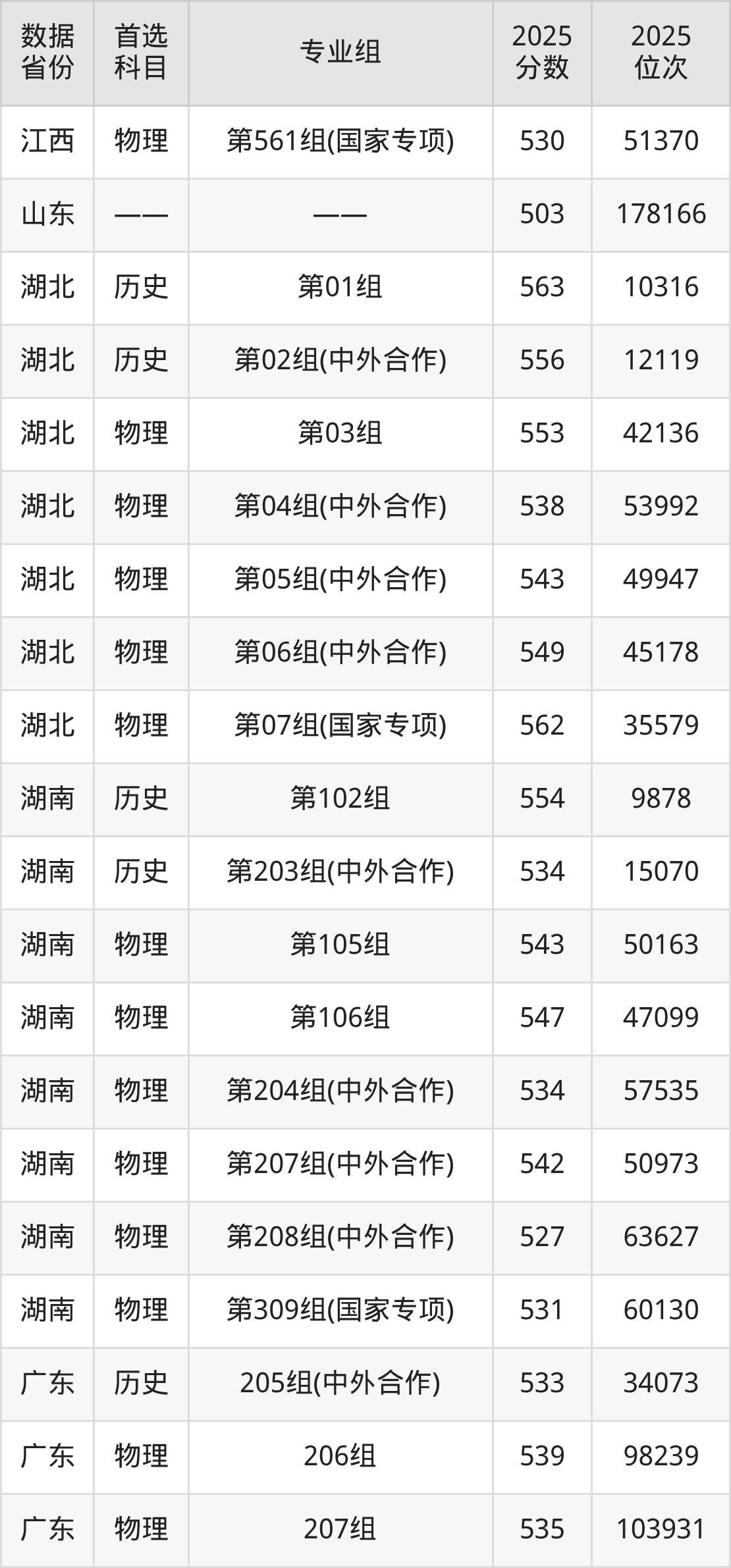 | 物理 | 机械工程 | 中外合作办学 | 111 |
