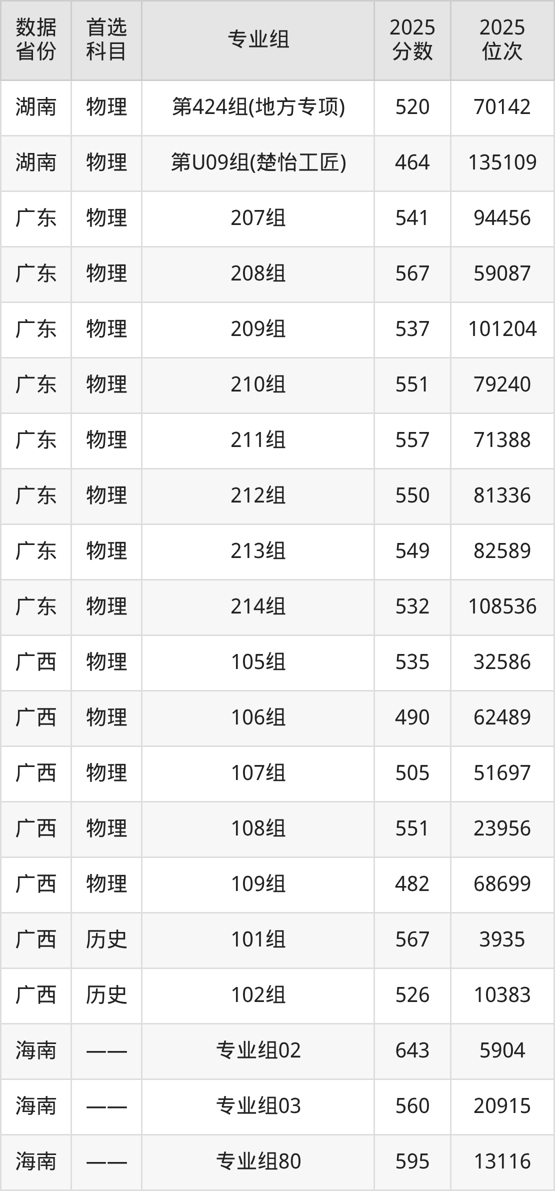 下面是湖南中医药大学各省最低分汇总,各专业组录取分数线可参考下方图片: