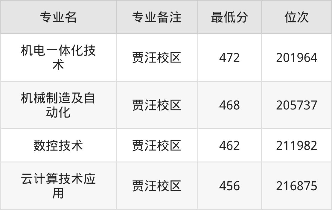 1、机电一体化技术(贾汪校区):472分、位次201964名;