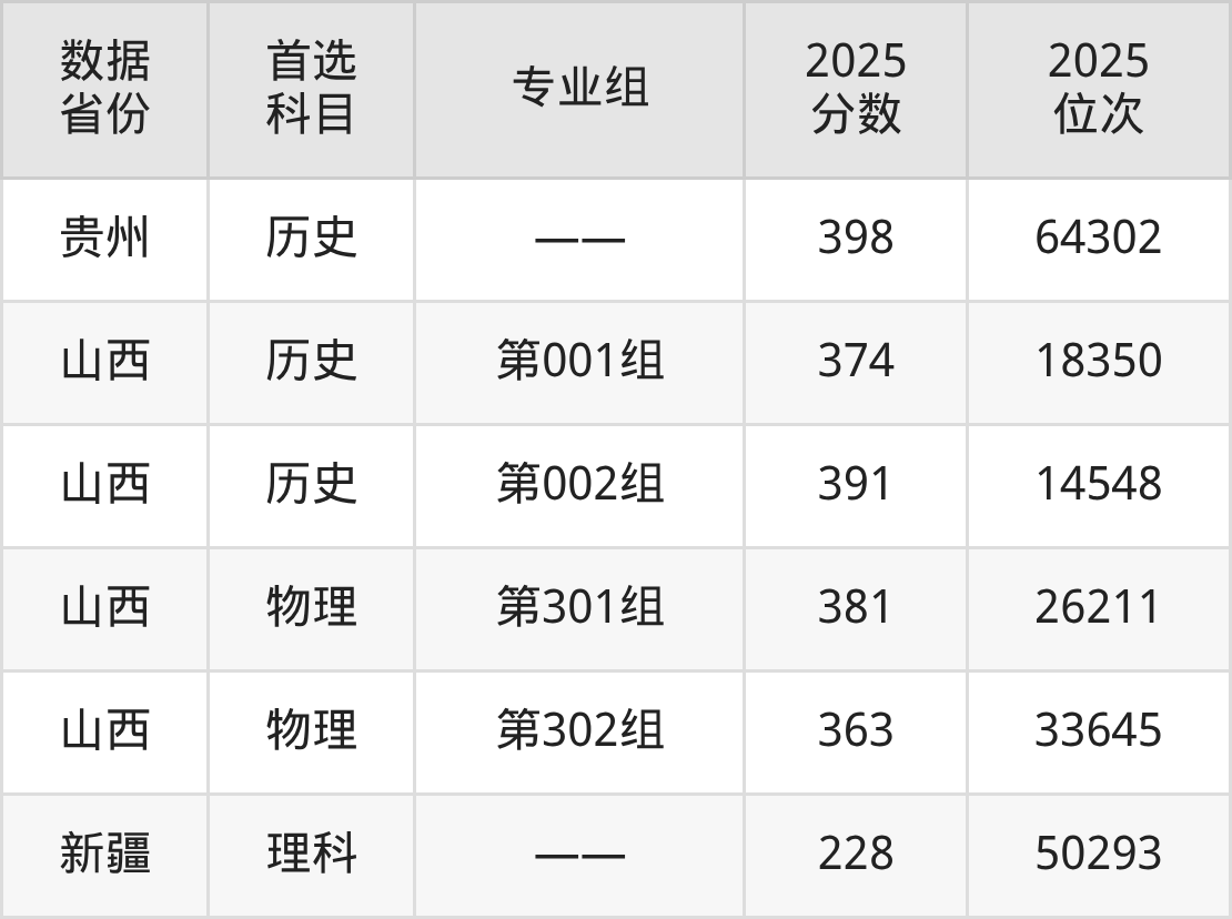2025年江苏安全技术职业学院全国录取分数线最低是220分,最高是496分,平均分在404分左右。在多数地区录取最低分均超过320分。低于320分能上的地区只有河北、新疆和江苏,高于平均值较多的是江西、浙江、安徽和山东等地,均有专业组最低分在410分及以上。