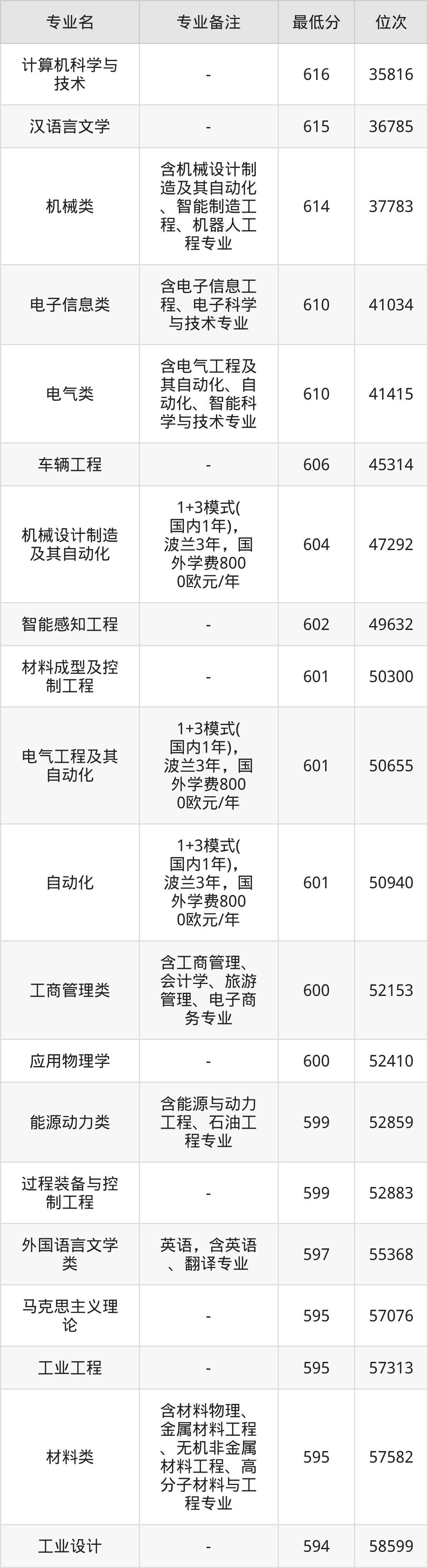 2025年燕山大学招生专业共计25个,其中录取分数线最低的专业是化学工程与工艺(1+3模式(国内1年),波兰3年,国外学费8000欧元/年),2025年最低分是537分,位次排名是127851名。而该校最难考的专业是计算机科学与技术,2025年最低分616分,位次35816名。