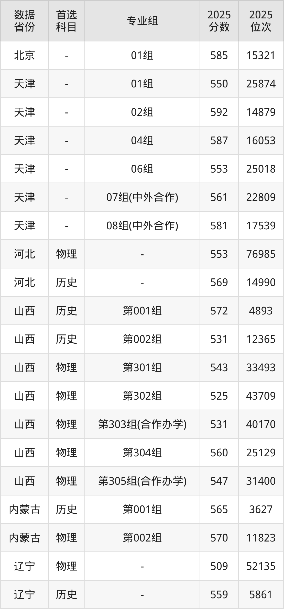 下面是燕山大学各省最低分汇总,各专业组录取分数线可参考下方图片: