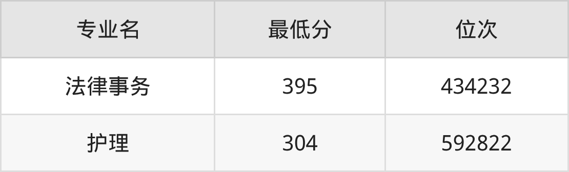 2、护理:304分、位次592822名。