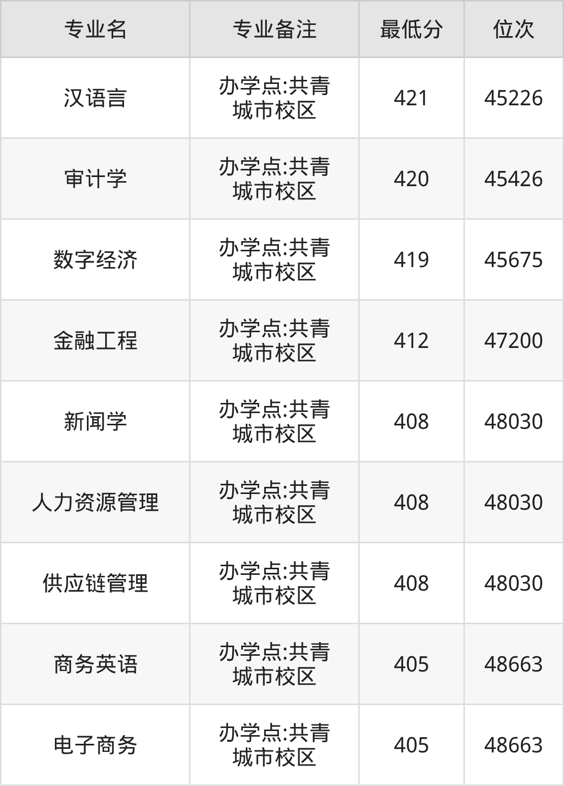 7、供应链管理(办学点:共青城市校区):408分、位次48030名;
