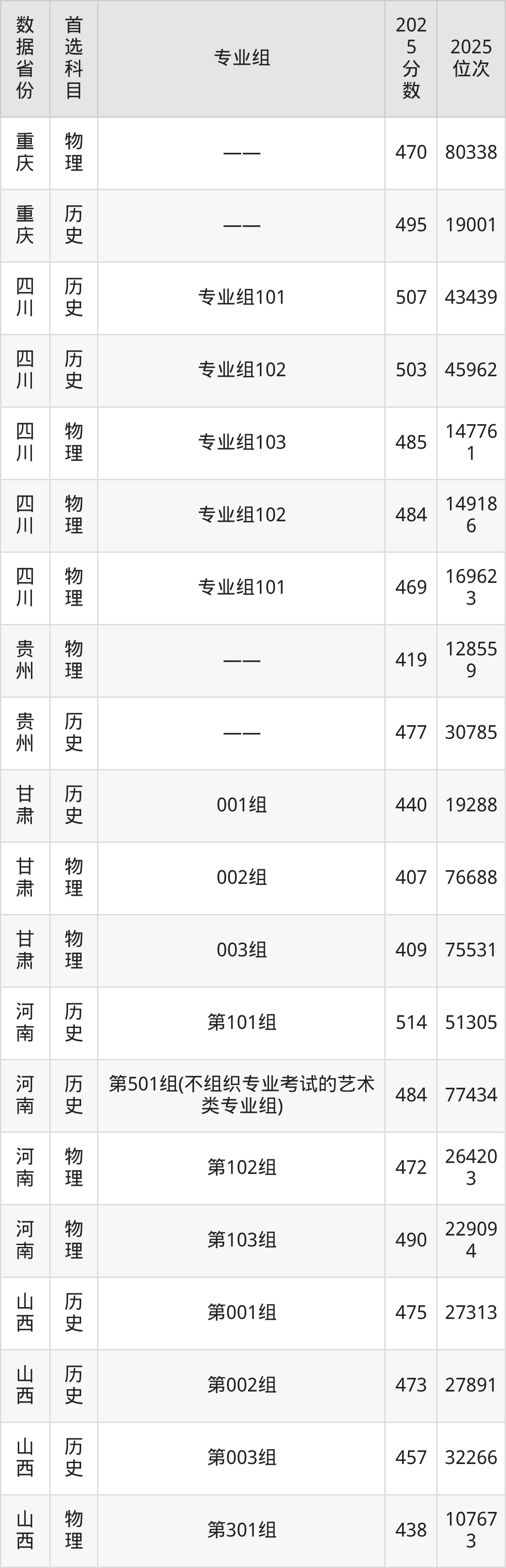 四川:历史组503分、物理组469分;