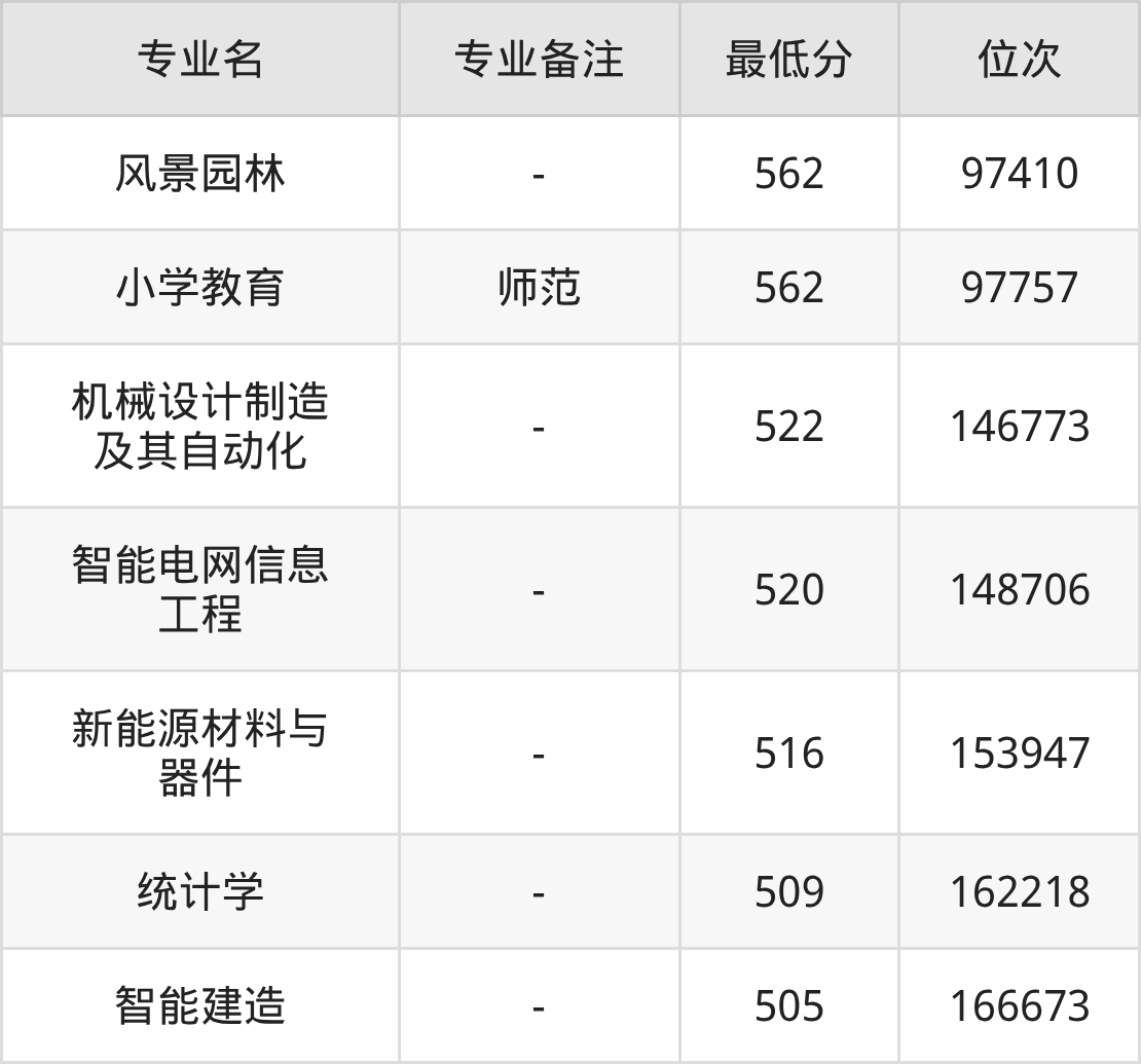 2025年许昌学院招生专业共计7个,其中录取分数线最低的专业是智能建造,2025年最低分是505分,位次排名是166673名。而该校最难考的专业是风景园林,2025年最低分562分,位次97410名。