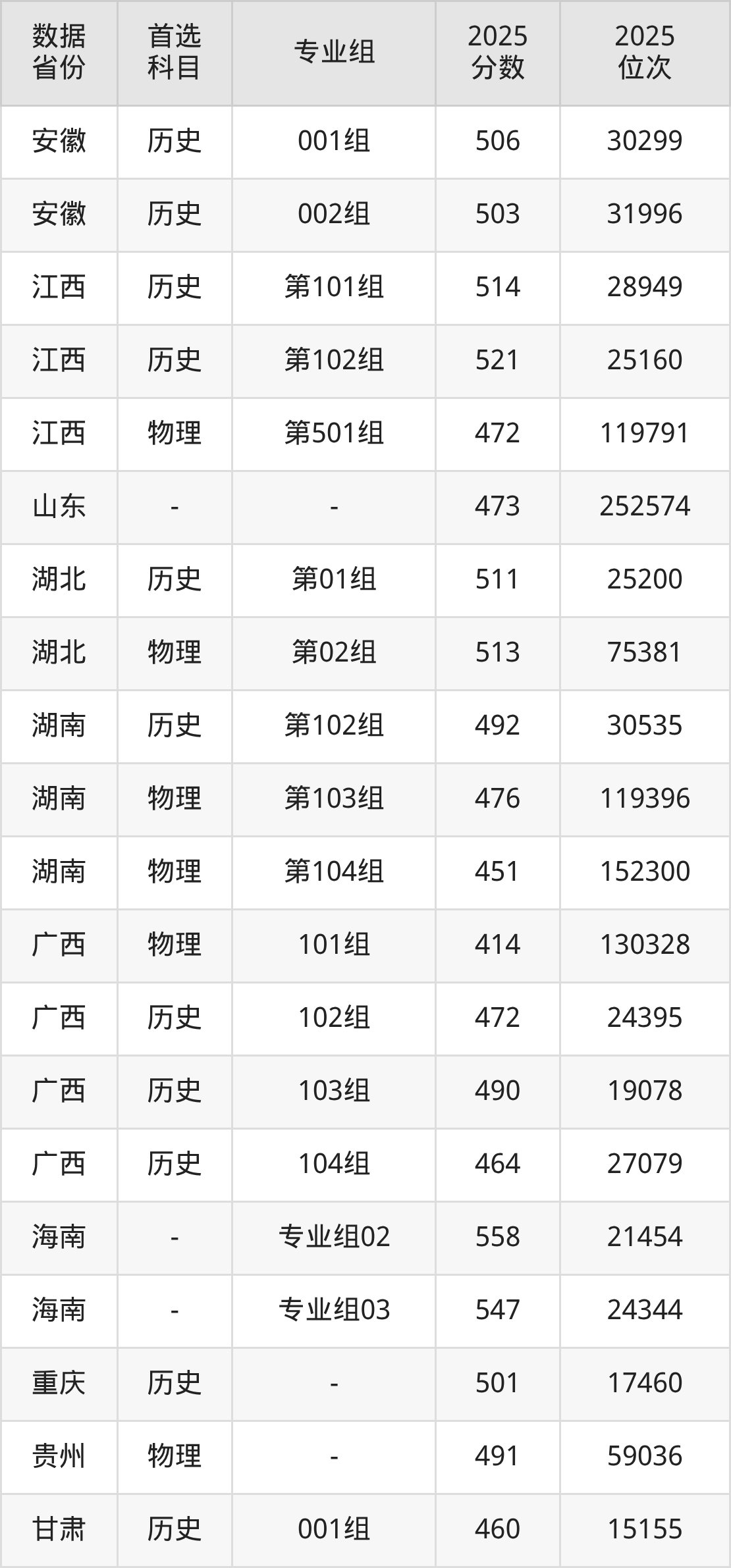 2025年许昌学院全国录取分数线最低是344分,最高是558分,平均分在480分左右。在多数地区录取最低分均超过400分。低于400分能上的地区只有新疆,高于平均值较多的是海南、河北、江苏和安徽等地,均有专业组最低分在514分及以上。