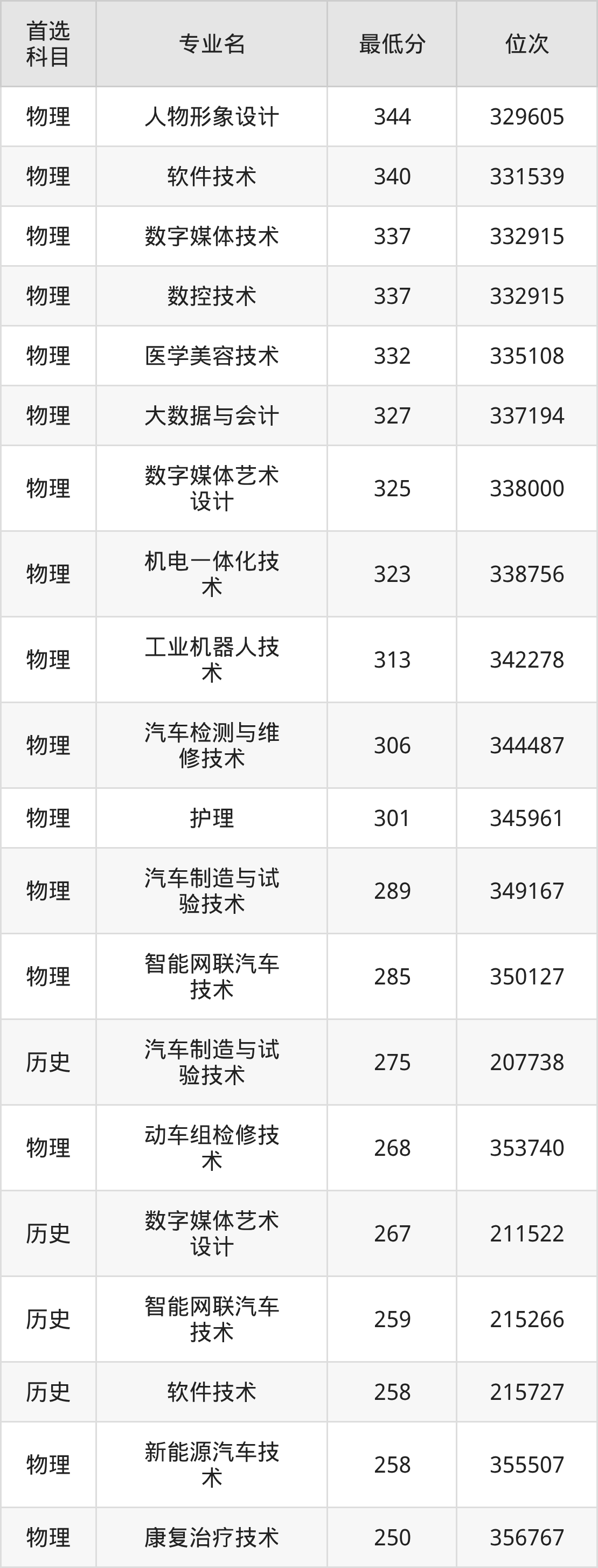 3、数字媒体技术:337分(物理类)、位次332915名;