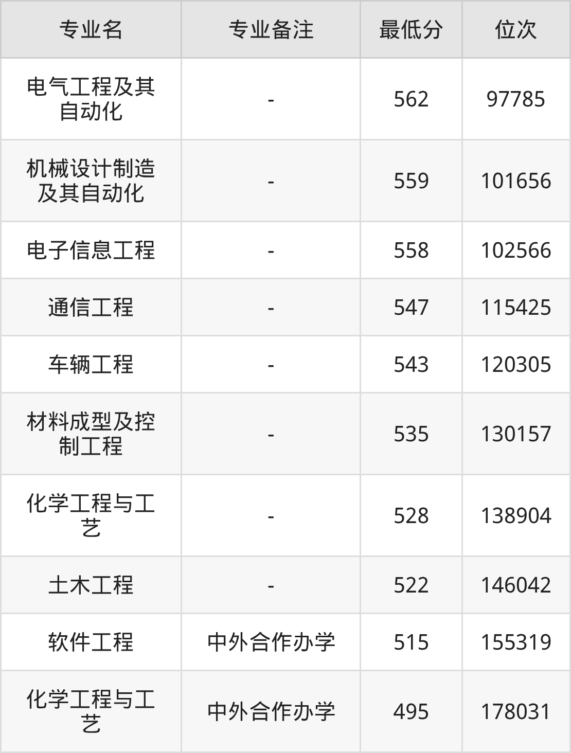 1、电气工程及其自动化:562分、位次97785名;