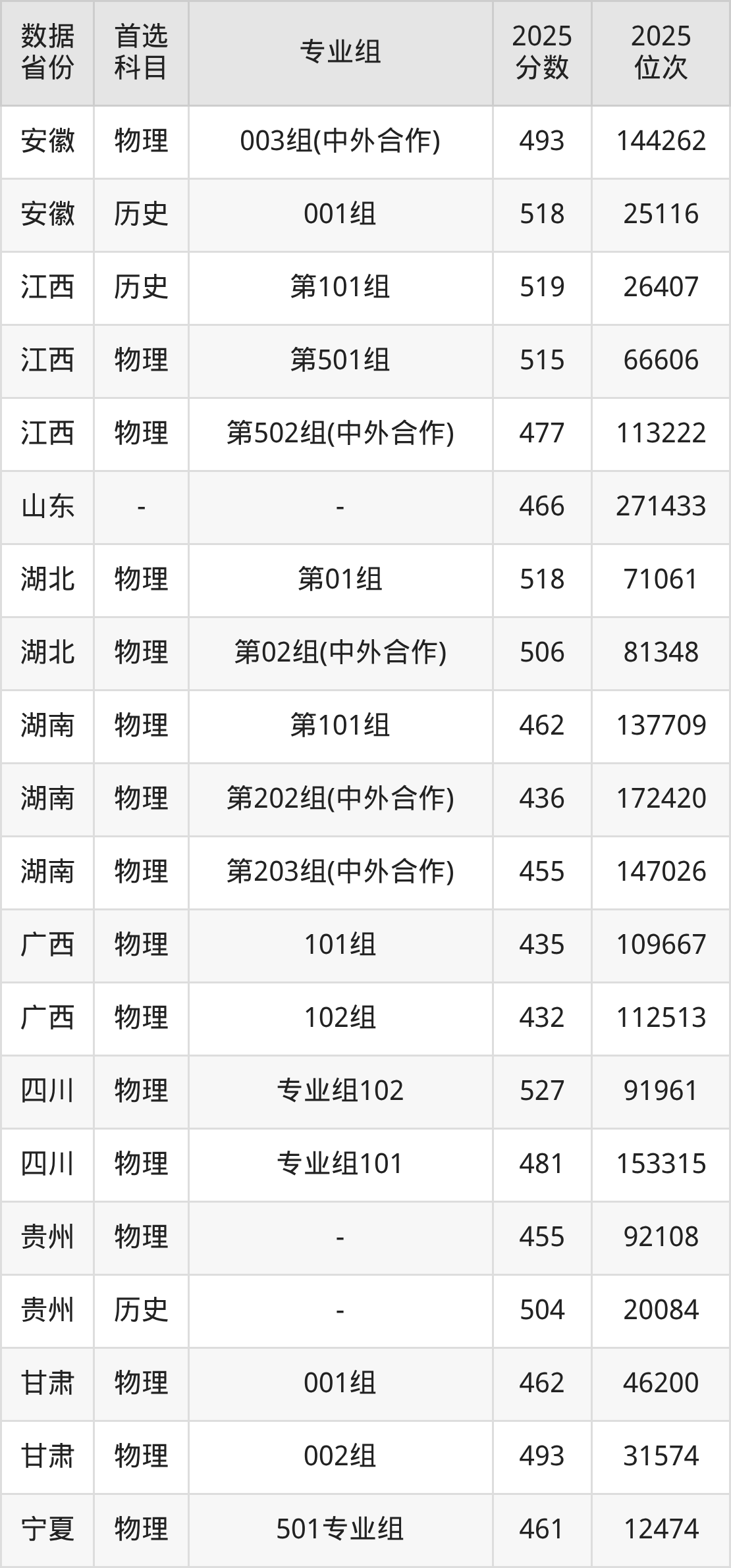 宁夏:物理组461分;