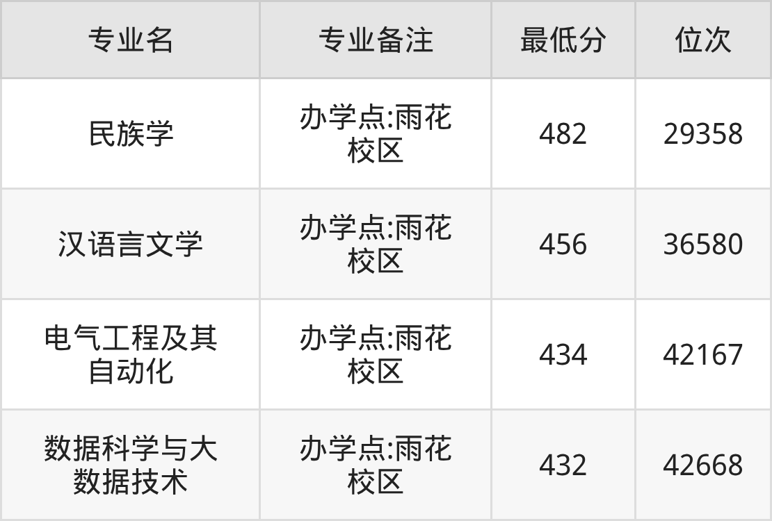 1、民族学(办学点:雨花校区):482分、位次29358名;