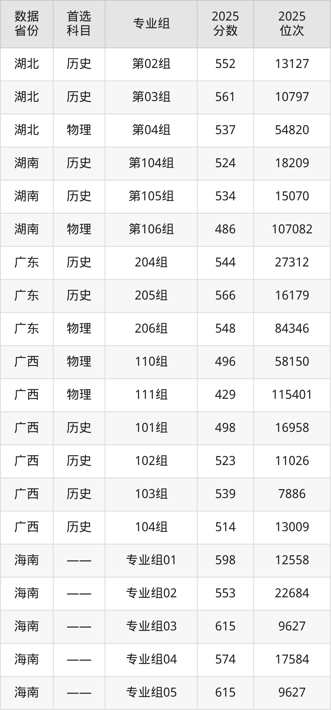 2025年云南民族大学全国录取分数线最低是429分,最高是615分,平均分在520分左右。在多数地区录取最低分均超过430分。低于430分能上的地区只有广西,高于平均值较多的是河南、海南、湖北和广东等地,均有专业组最低分在548分及以上。