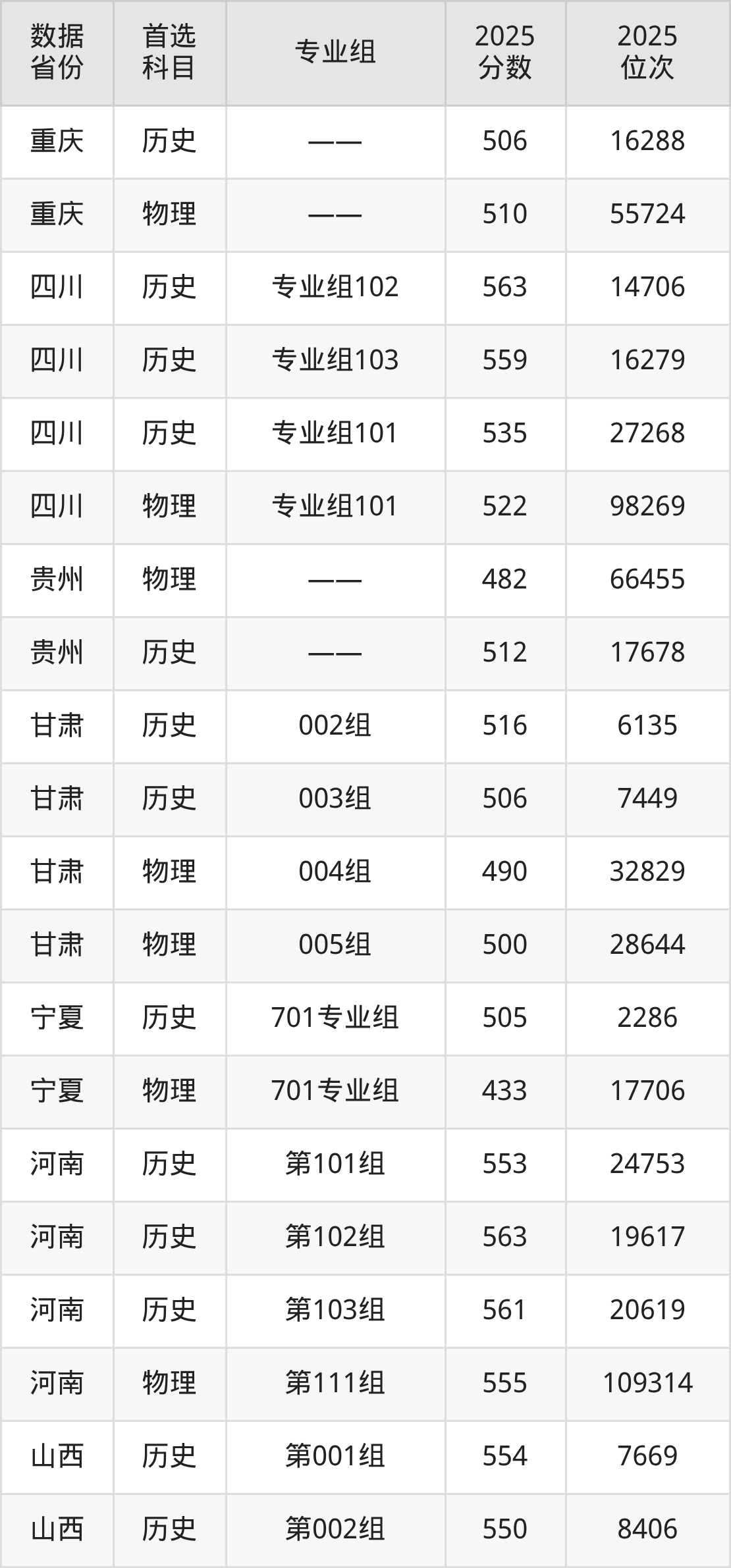 下面是云南民族大学各省最低分汇总,各专业组录取分数线可参考下方图片:
