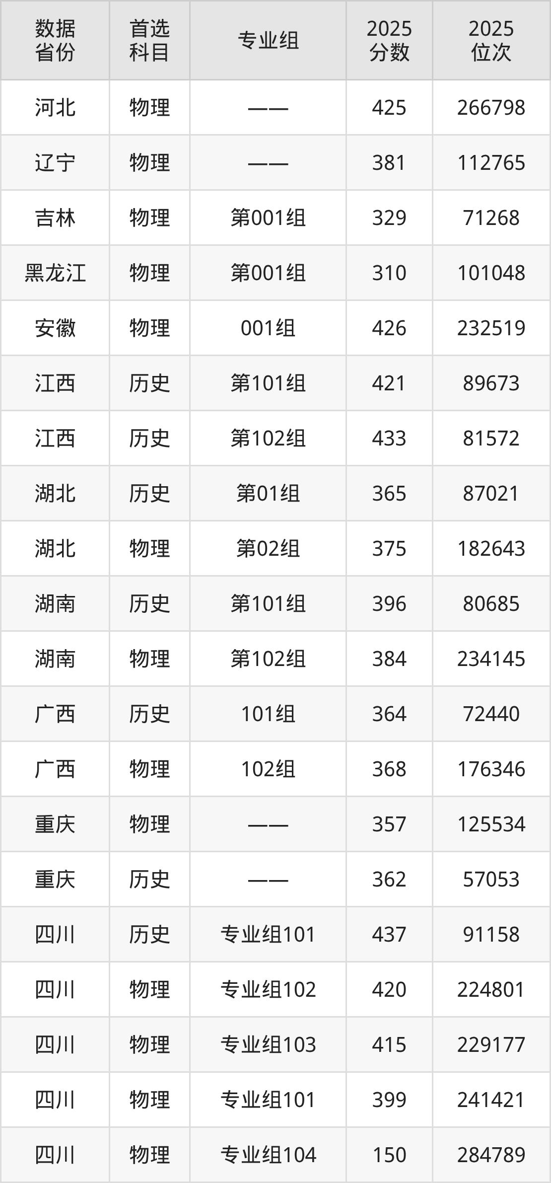 四川:历史组437分、物理组150分;