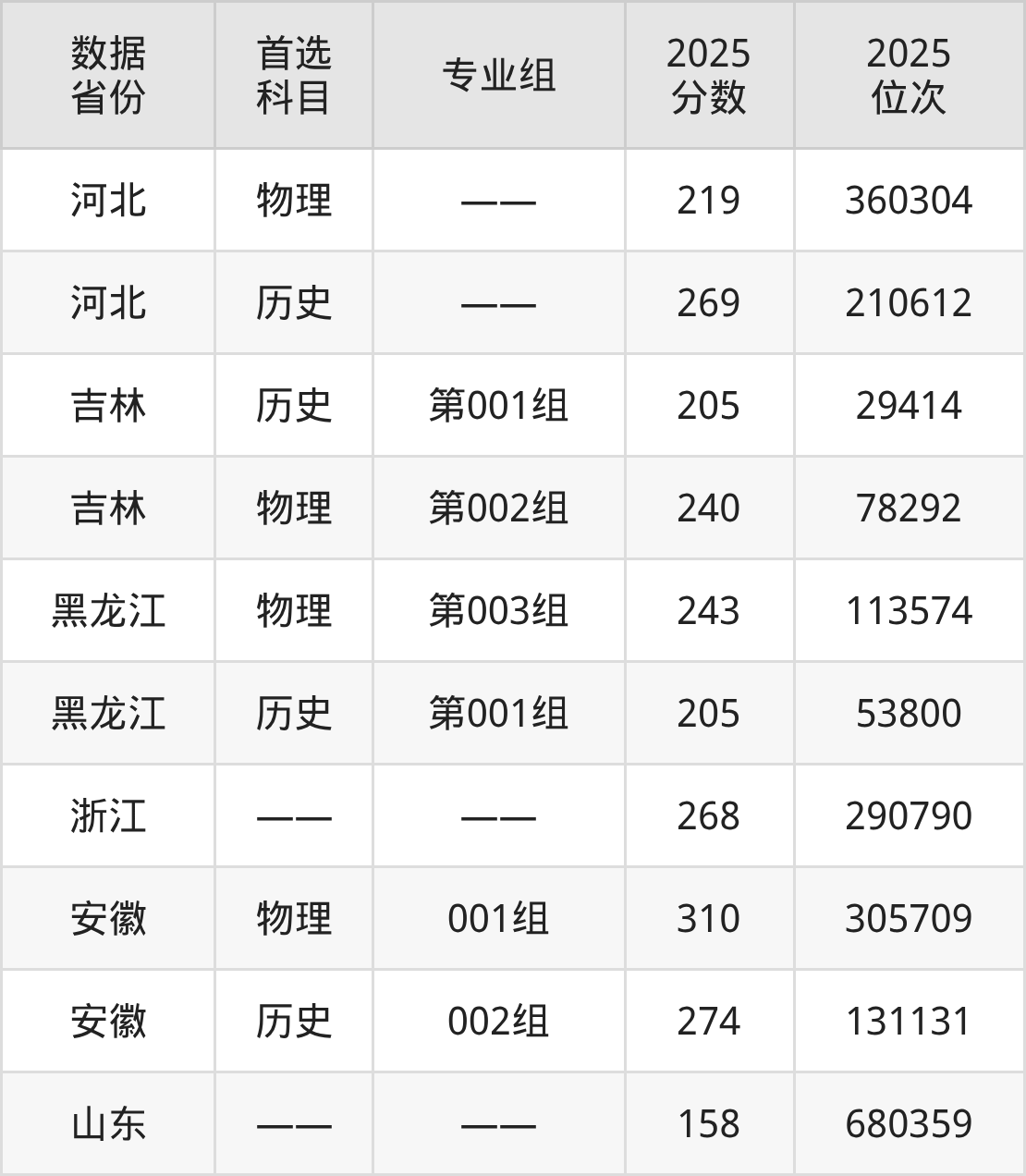 吉林:历史组205分、物理组240分;