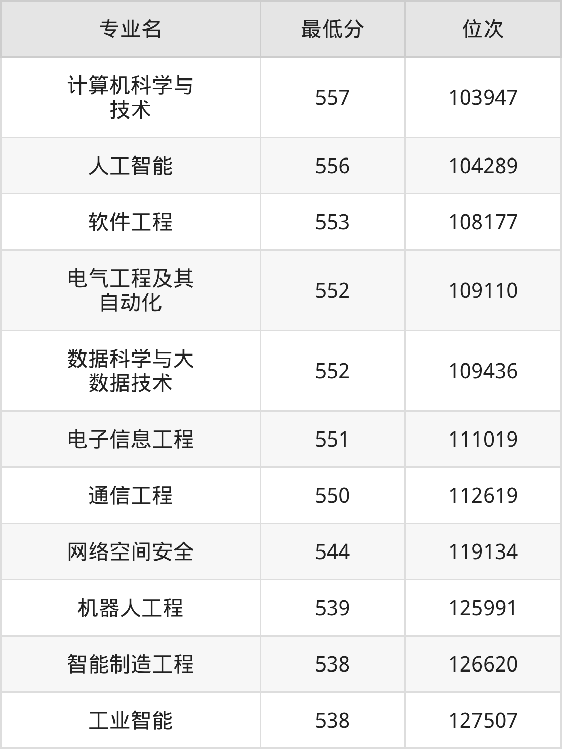 2025年湖南第一师范学院招生专业共计11个,其中录取分数线最低的专业是工业智能,2025年最低分是538分,位次排名是127507名。而该校最难考的专业是计算机科学与技术,2025年最低分557分,位次103947名。