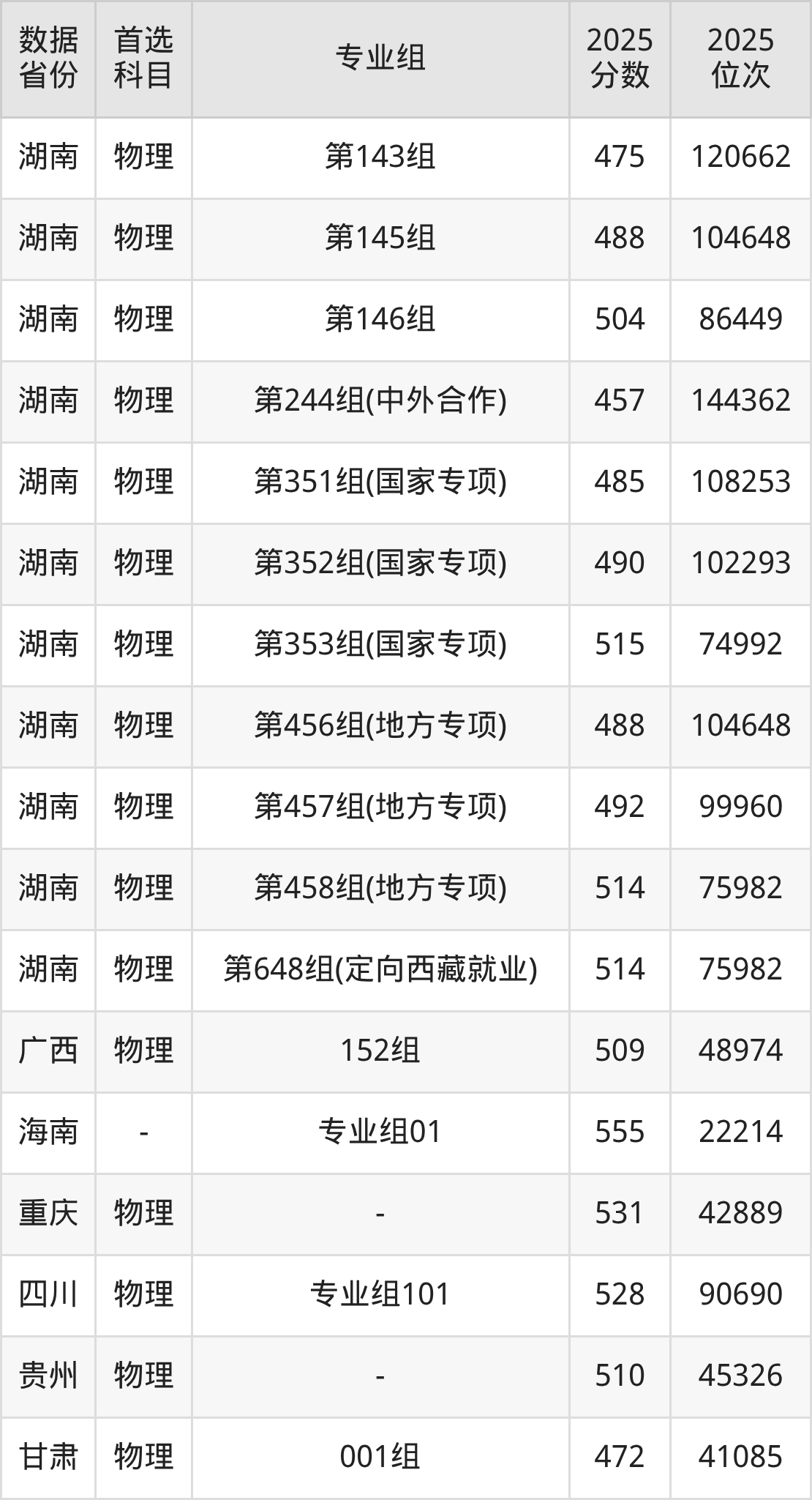 | 物理 | 计算机科学与 技术 | 办学地点:湖 南省长沙市 | 115 |