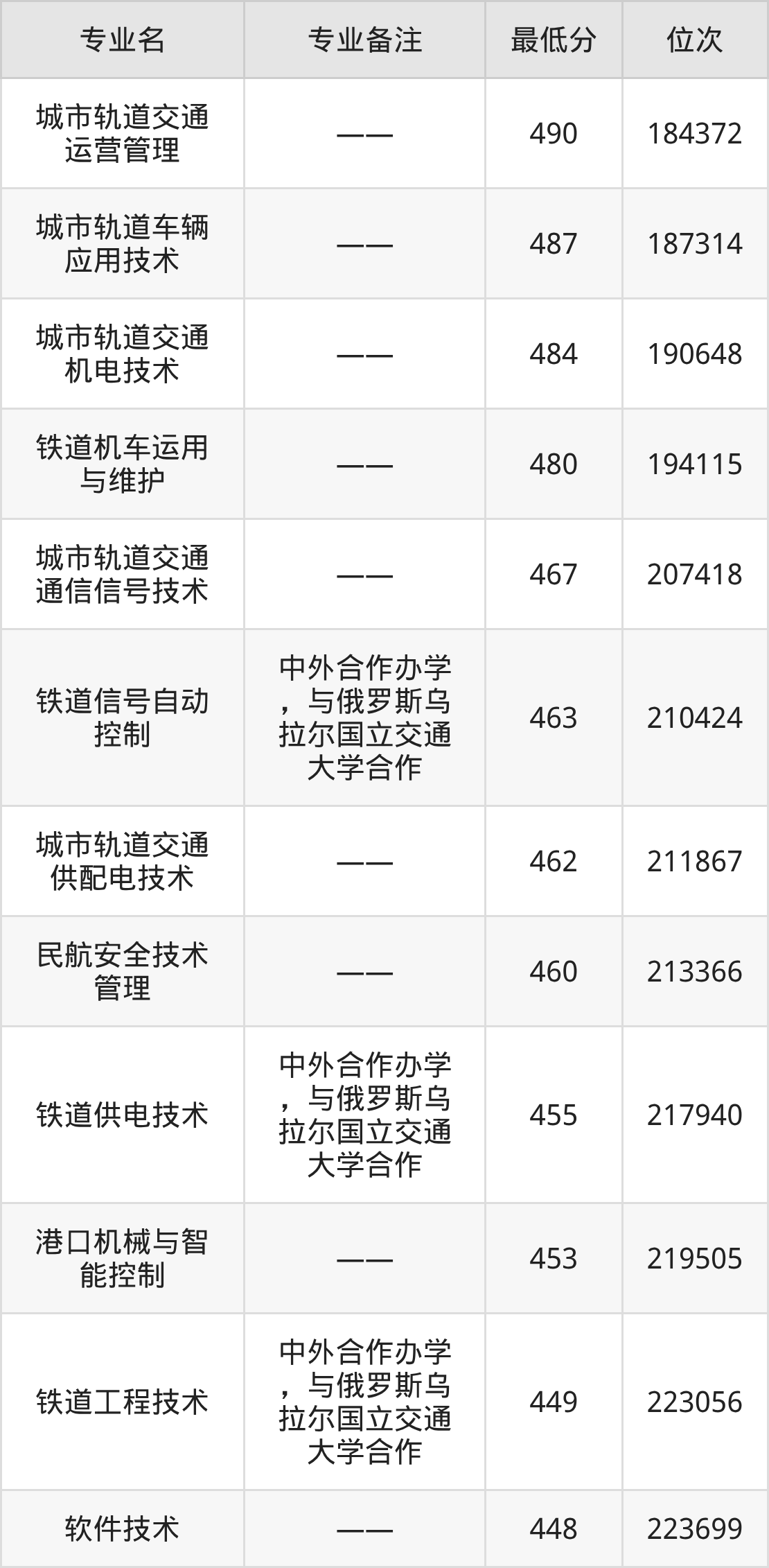 2、城市轨道车辆应用技术:487分、位次187314名;