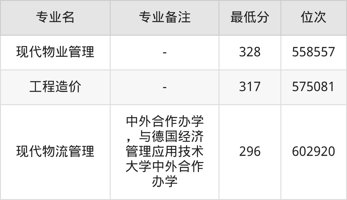 4、现代物流管理(高职3+2贯通培养)(衔接临沂大学物流管理专业):483分、位次228972名;