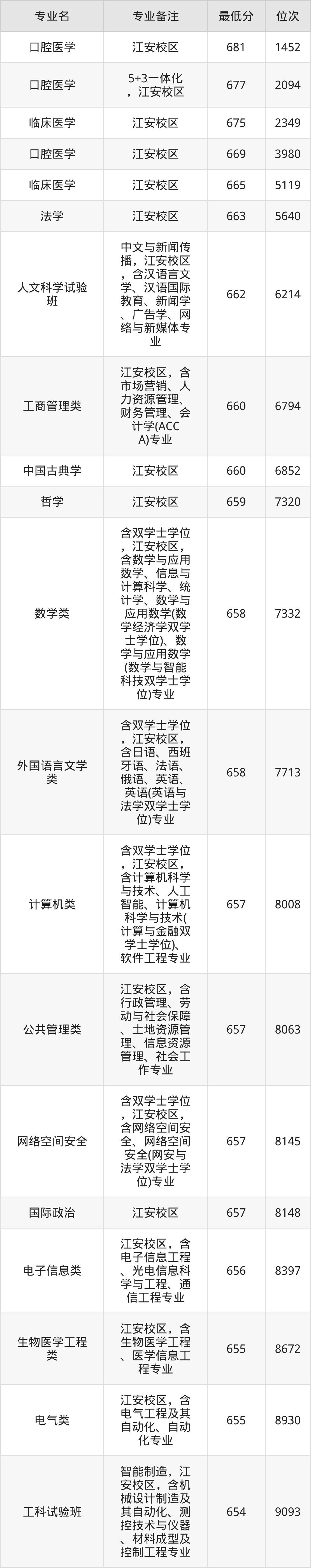 7、人文科学试验班(中文与新闻传播):662分、位次6214名;
