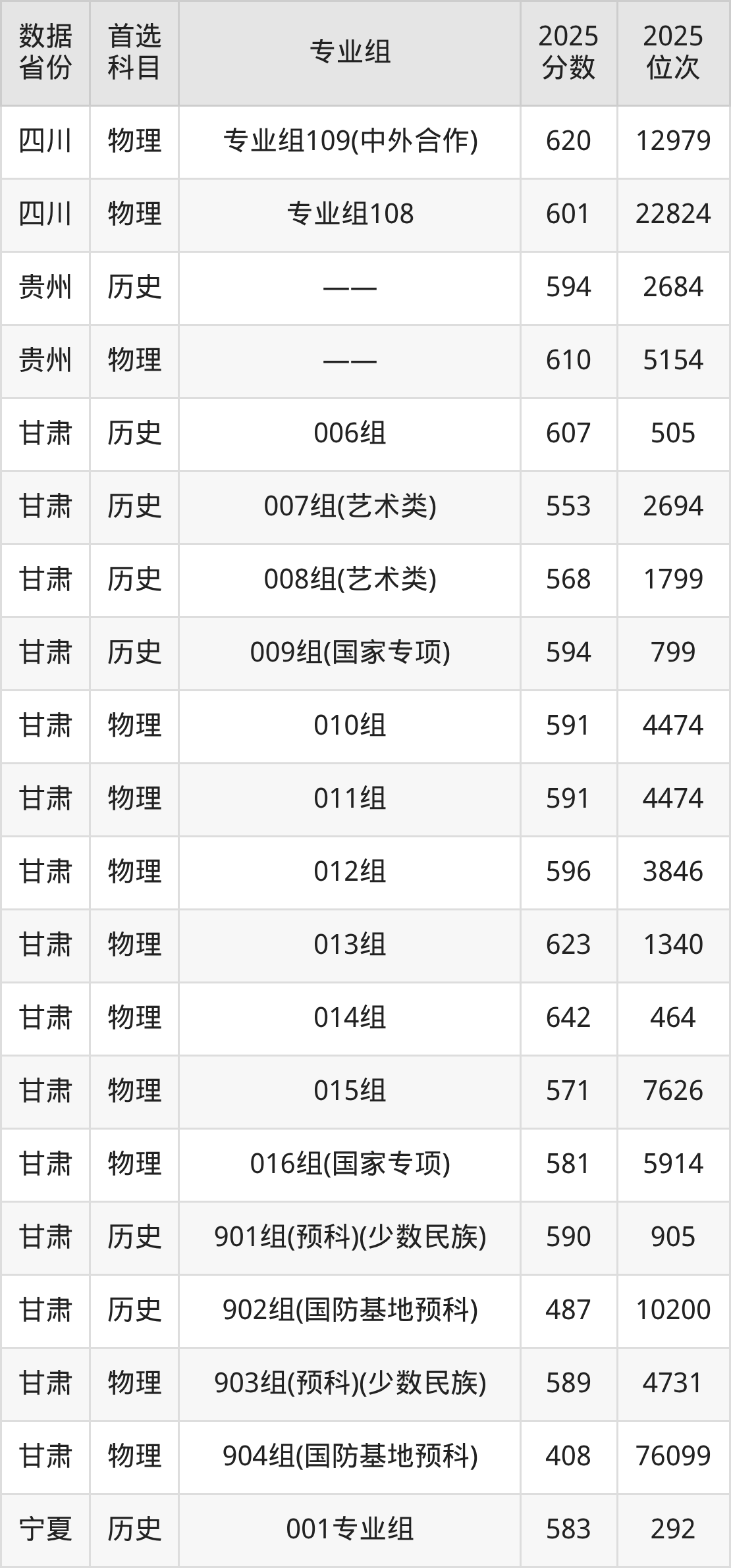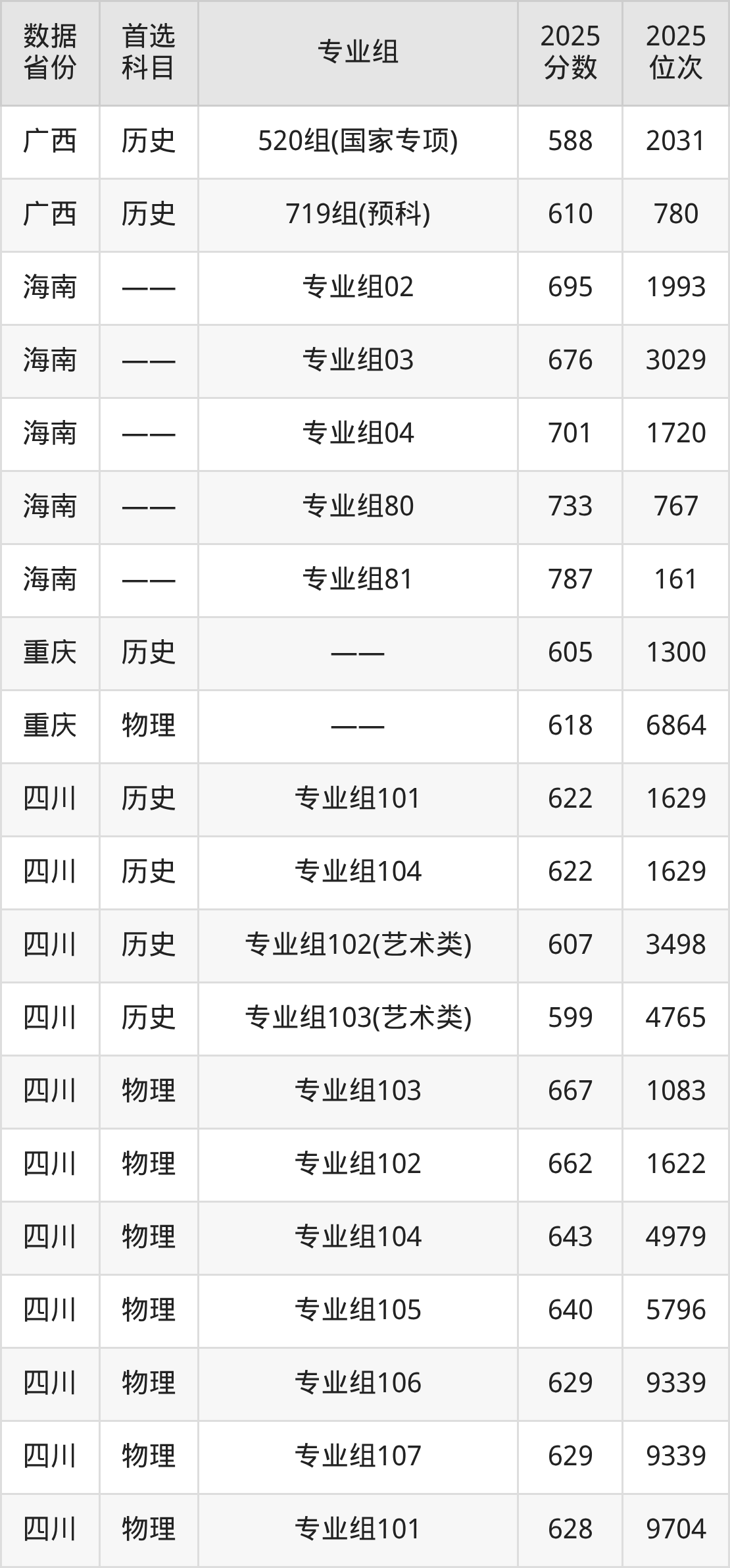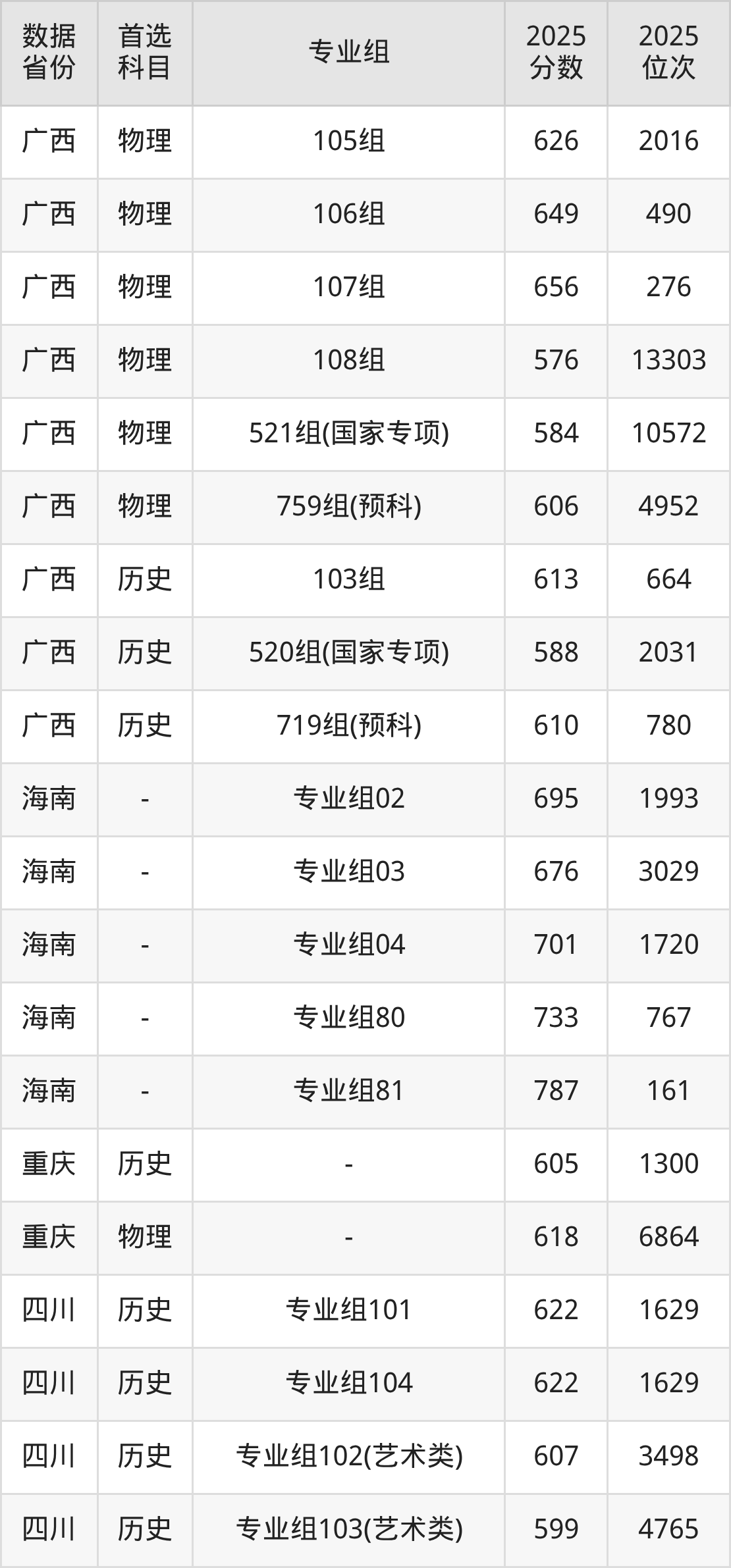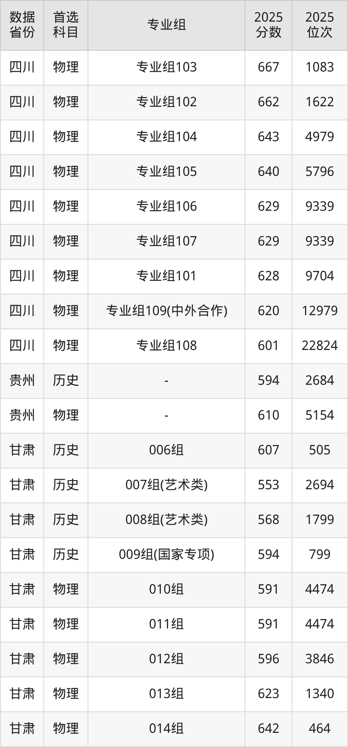 下面是四川大学各省最低分汇总,各专业组录取分数线可参考下方图片: