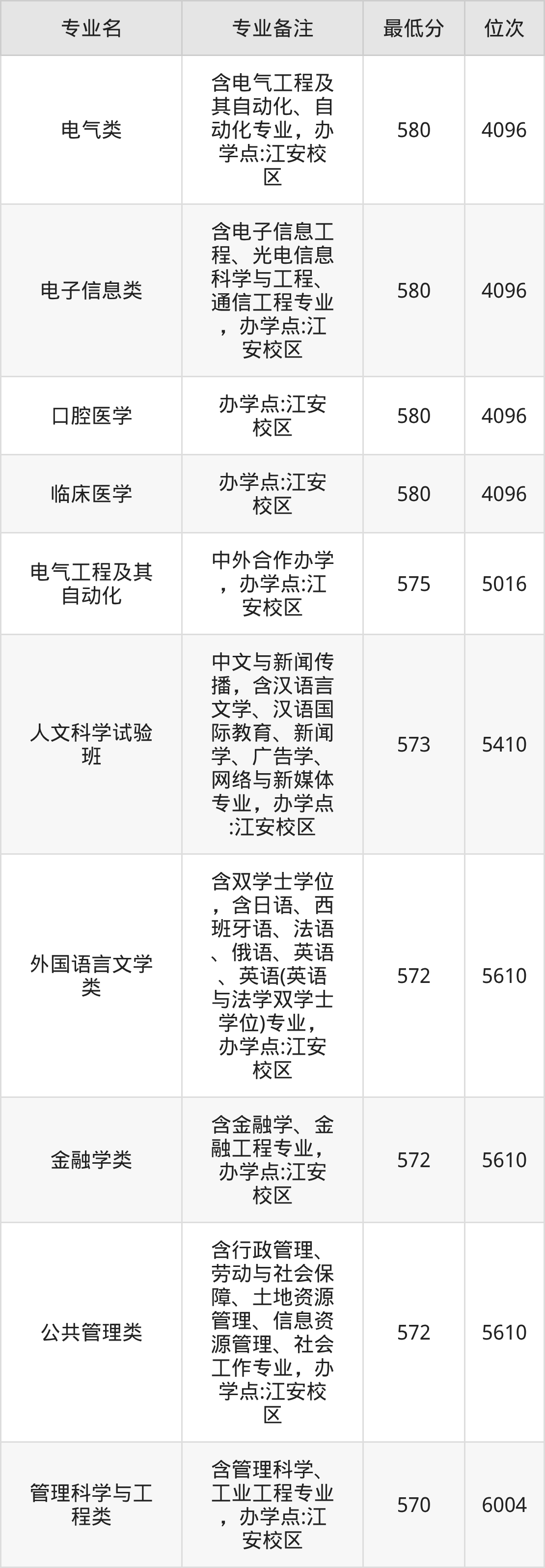 2、电子信息类(含电子信息工程、光电信息科学与工程、通信工程专业,办学点:江安校区):580分、位次4096名;
