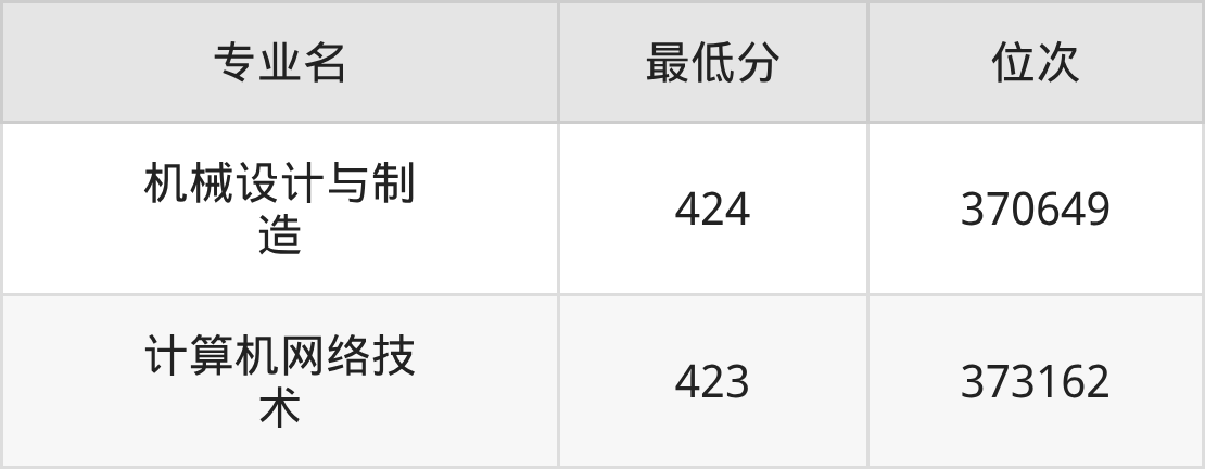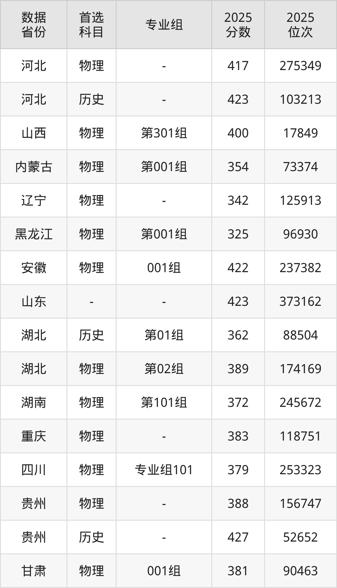 2025年河南工业职业技术学院全国录取分数线是325分到427分之间,其中在河北省录取最低分:物理组417分、历史组423分。参考山东招录数据,各专业分数线是:机械设计与制造424分、计算机网络技术423分等。