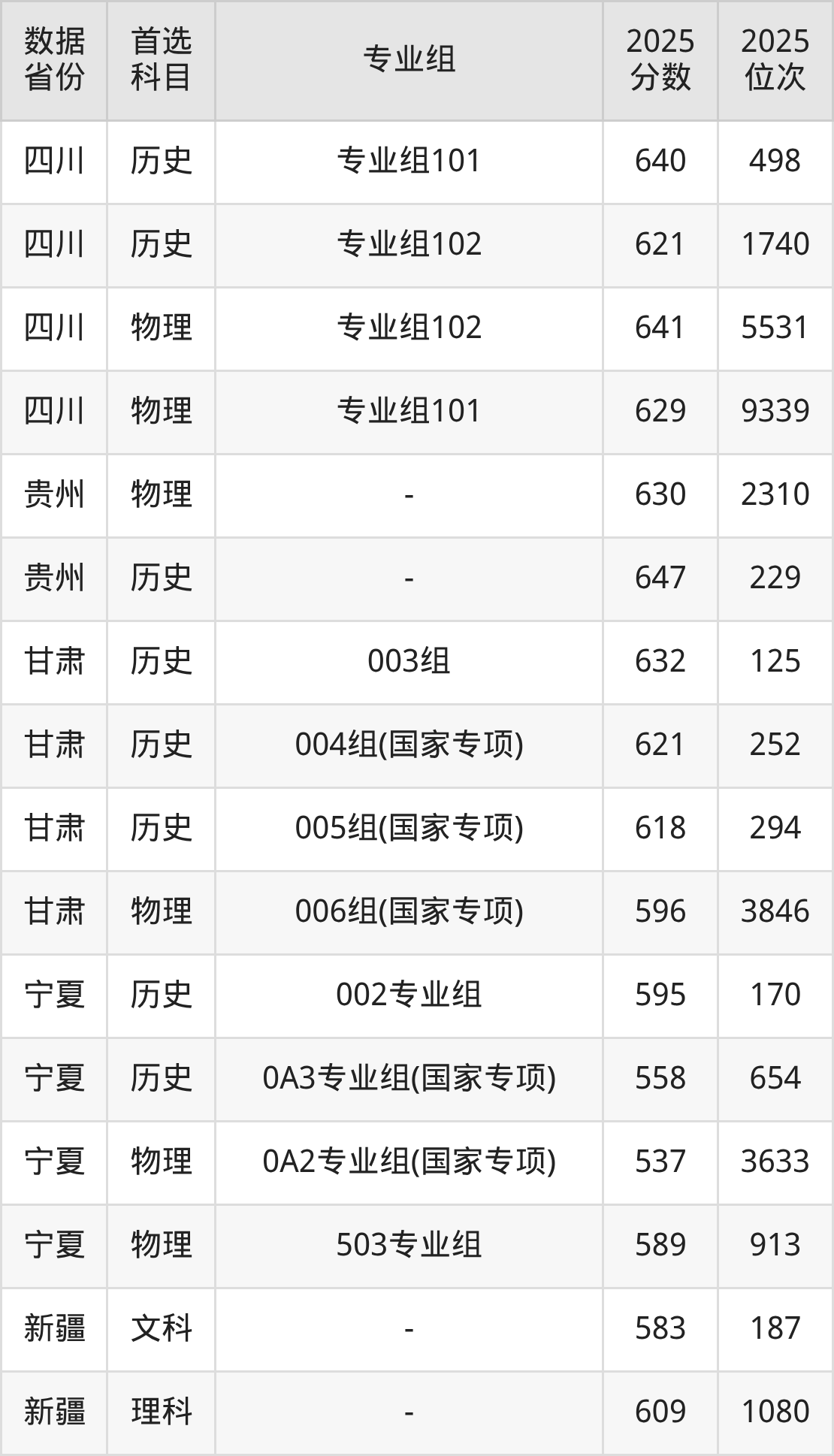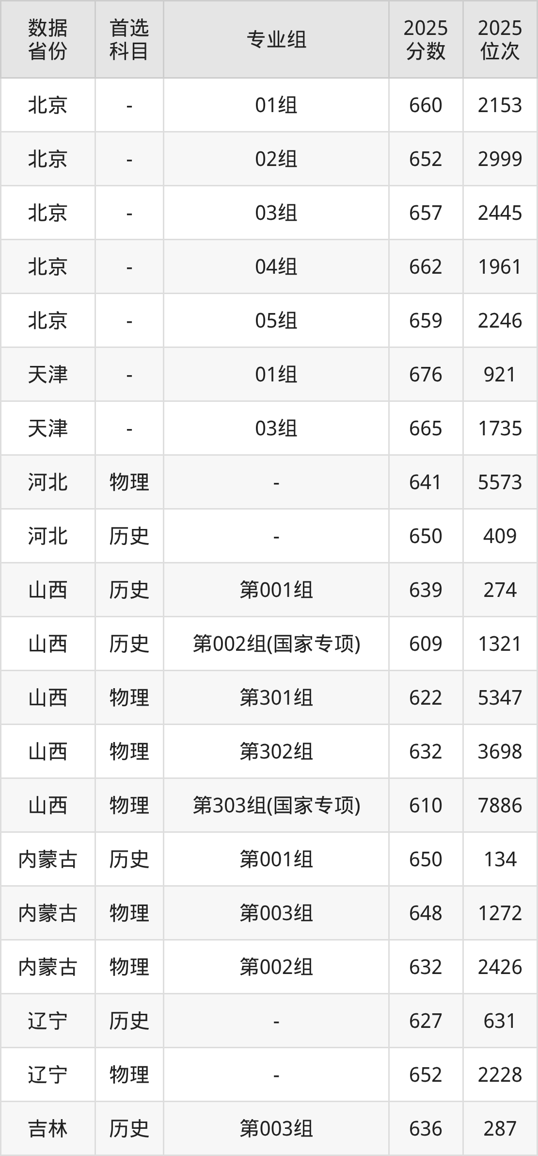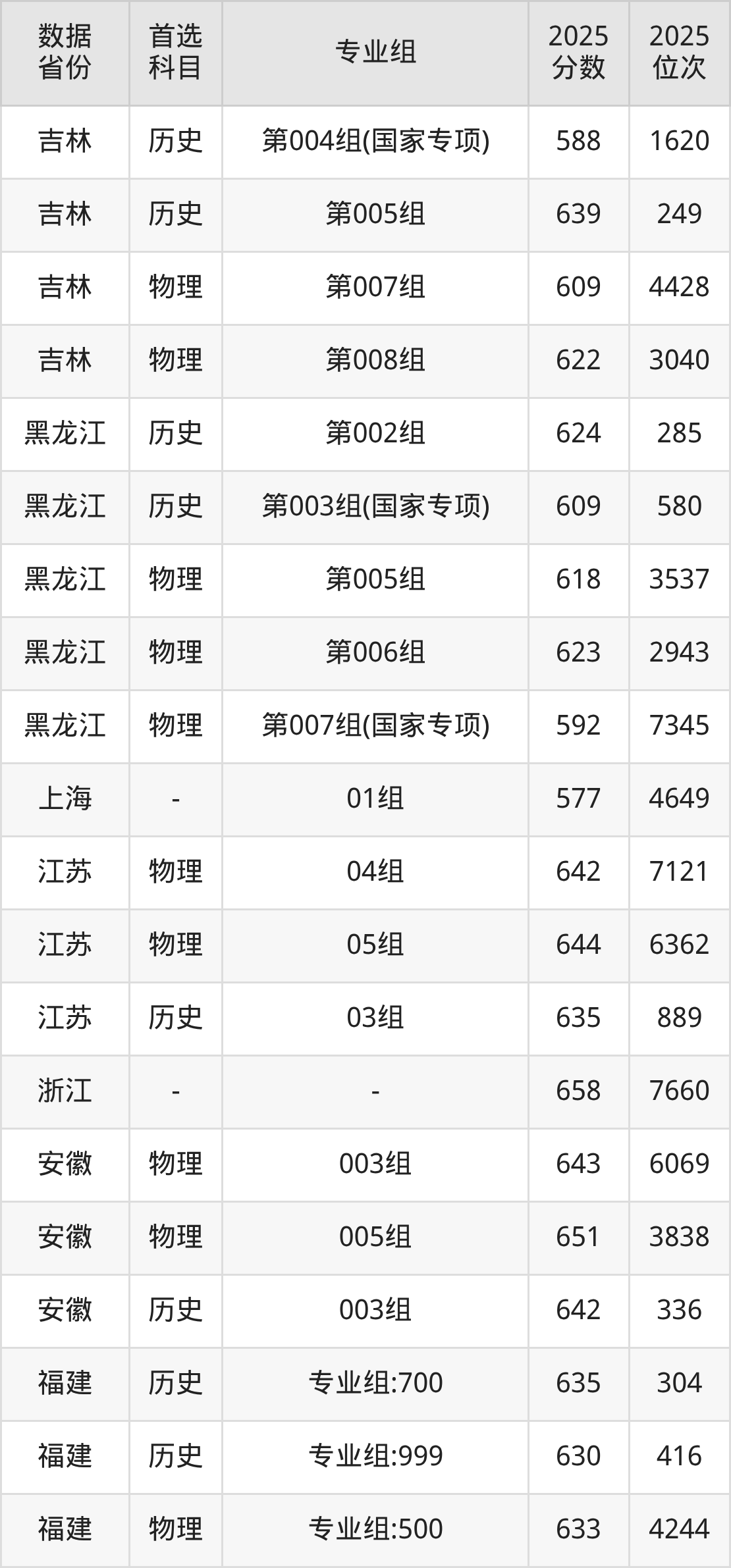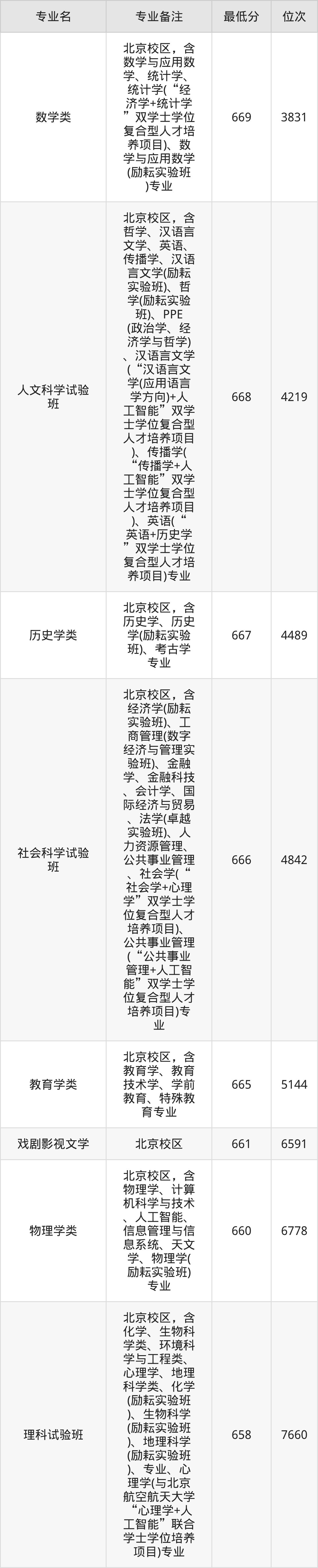 下面是北京师范大学各省最低分汇总,各专业组录取分数线可参考下方图片: