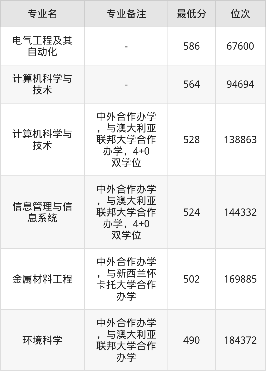 3、计算机科学与技术(中外合作办学):528分、位次138863名;