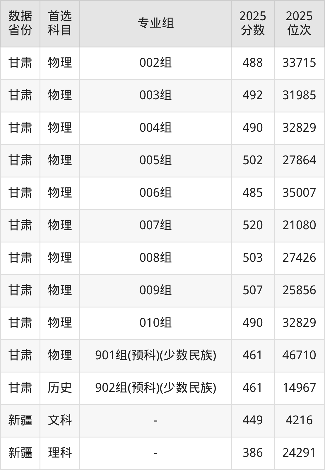 甘肃:物理组461分、历史组461分;