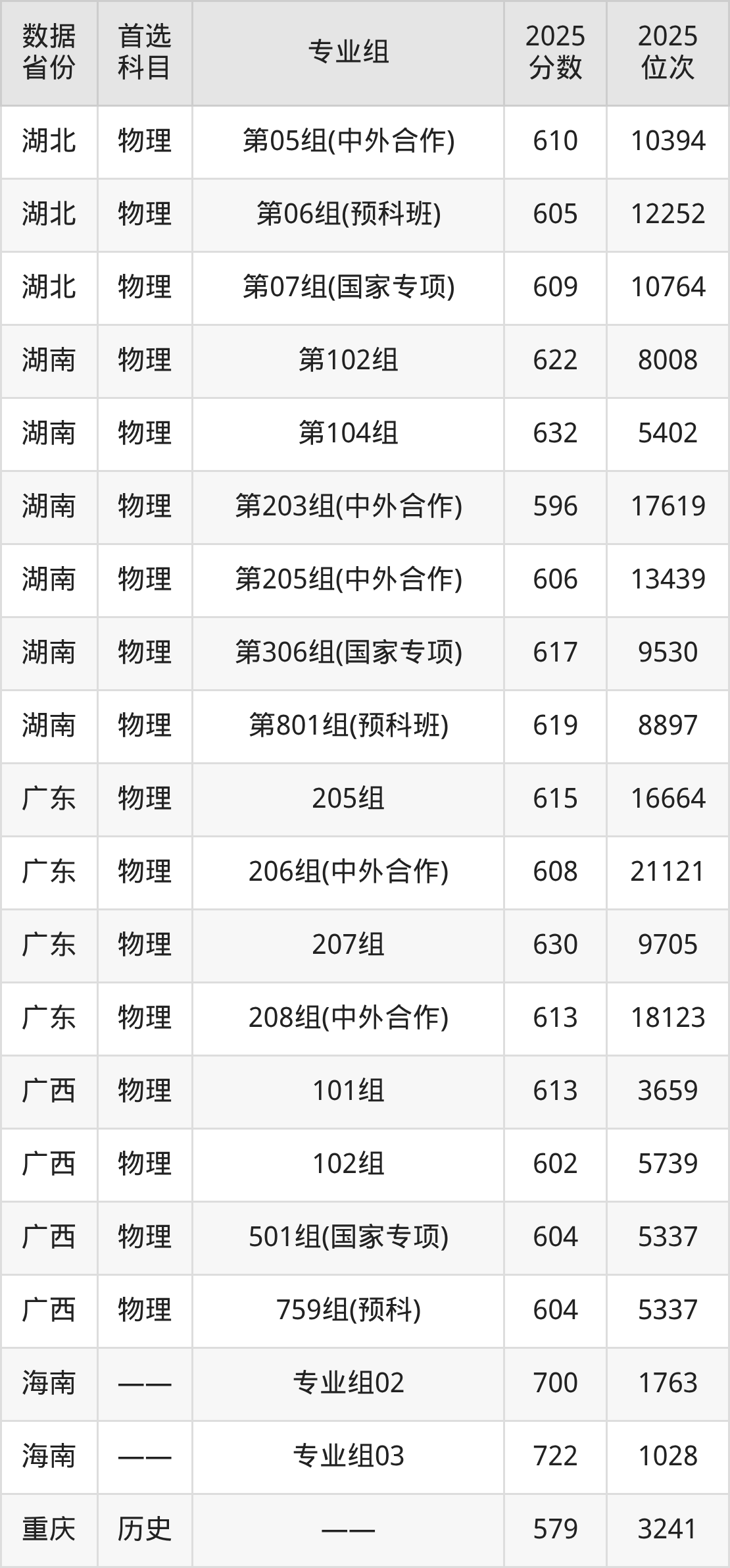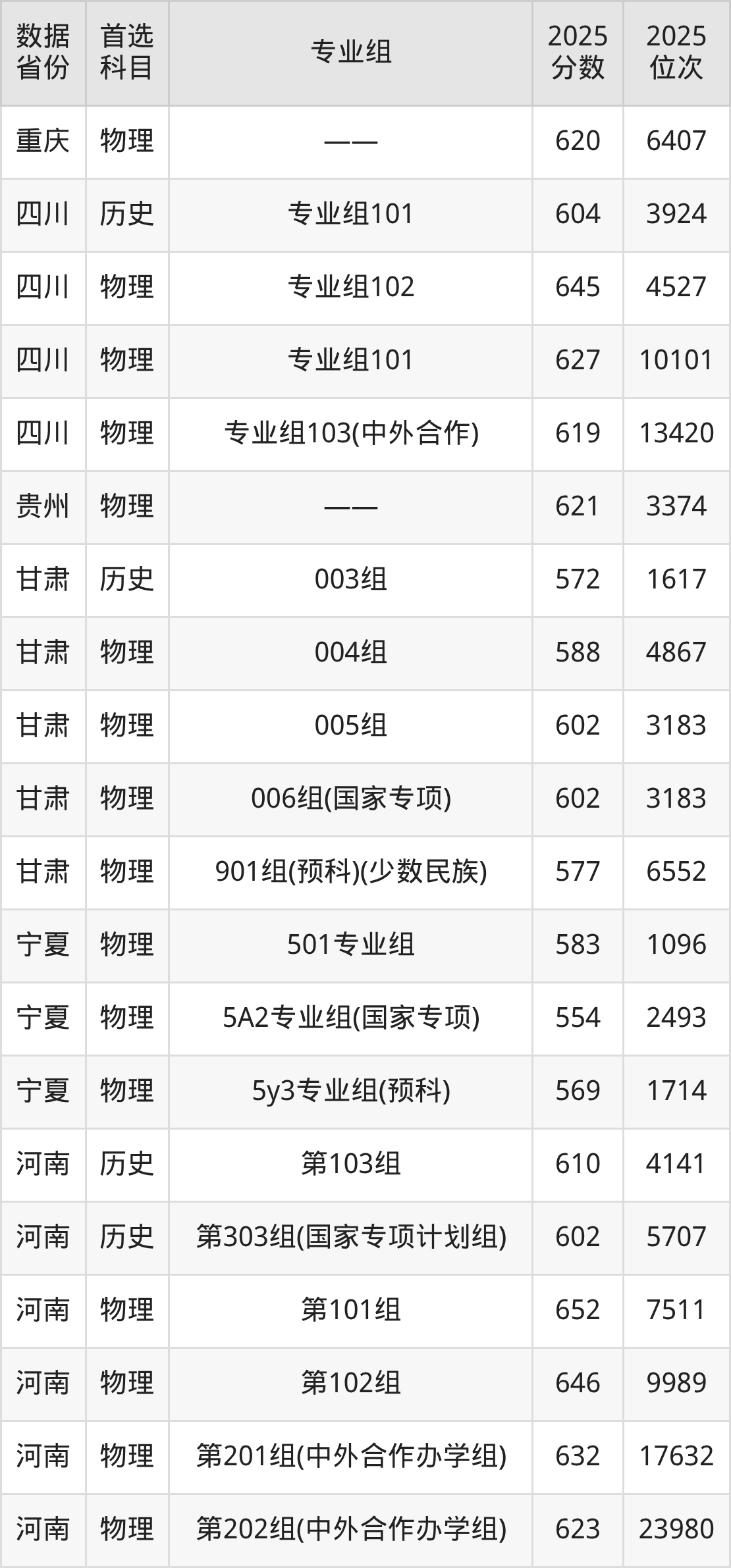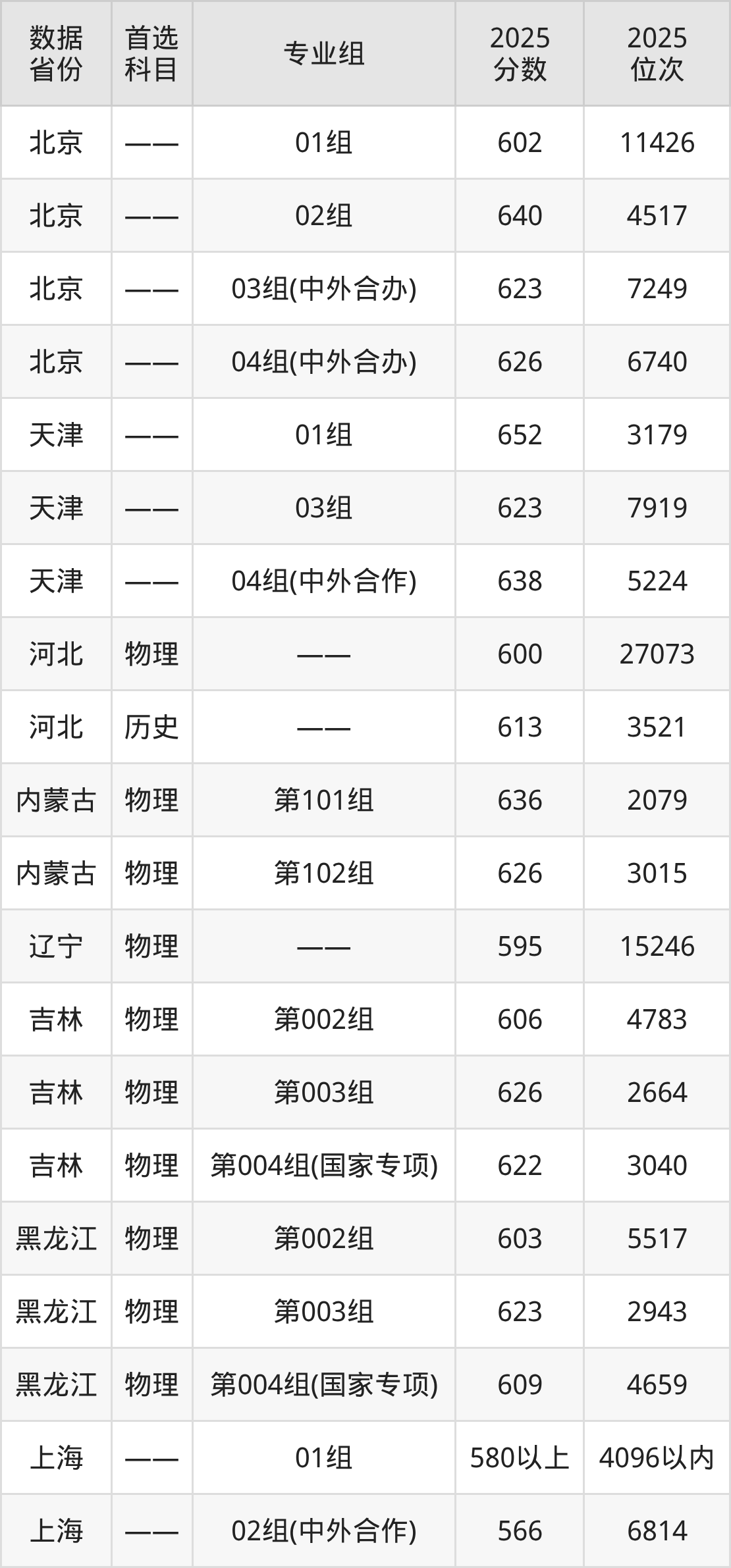 | 物理 | 计算机类 | 国家专项 | 7 |