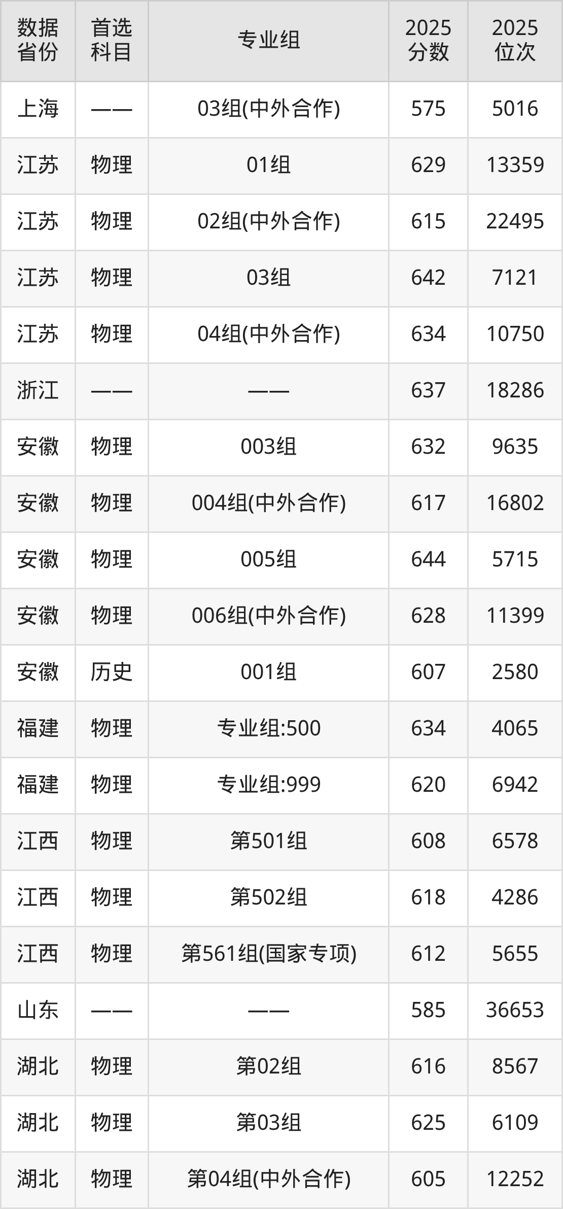 | 物理 | 数据科学与大 数据技术 | 中外合作办学 | 25 |