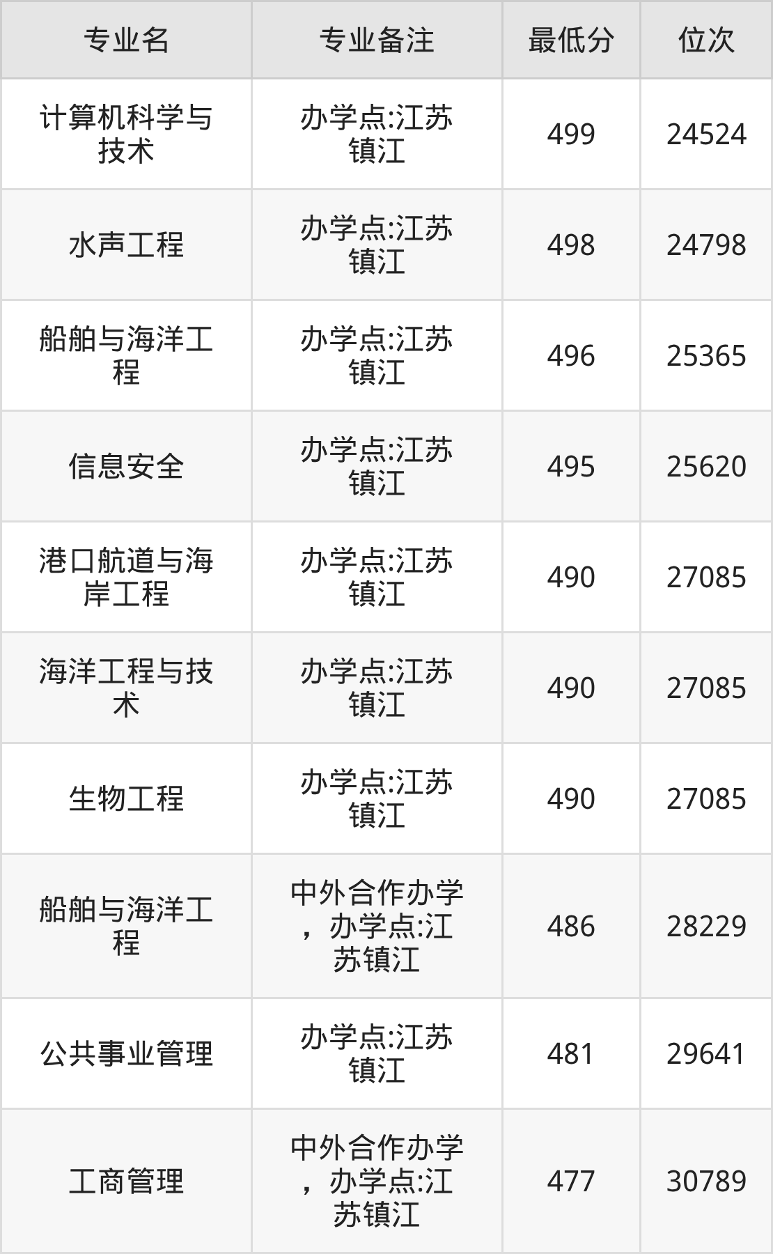 1、计算机科学与技术(办学点:江苏镇江):499分、位次24524名;